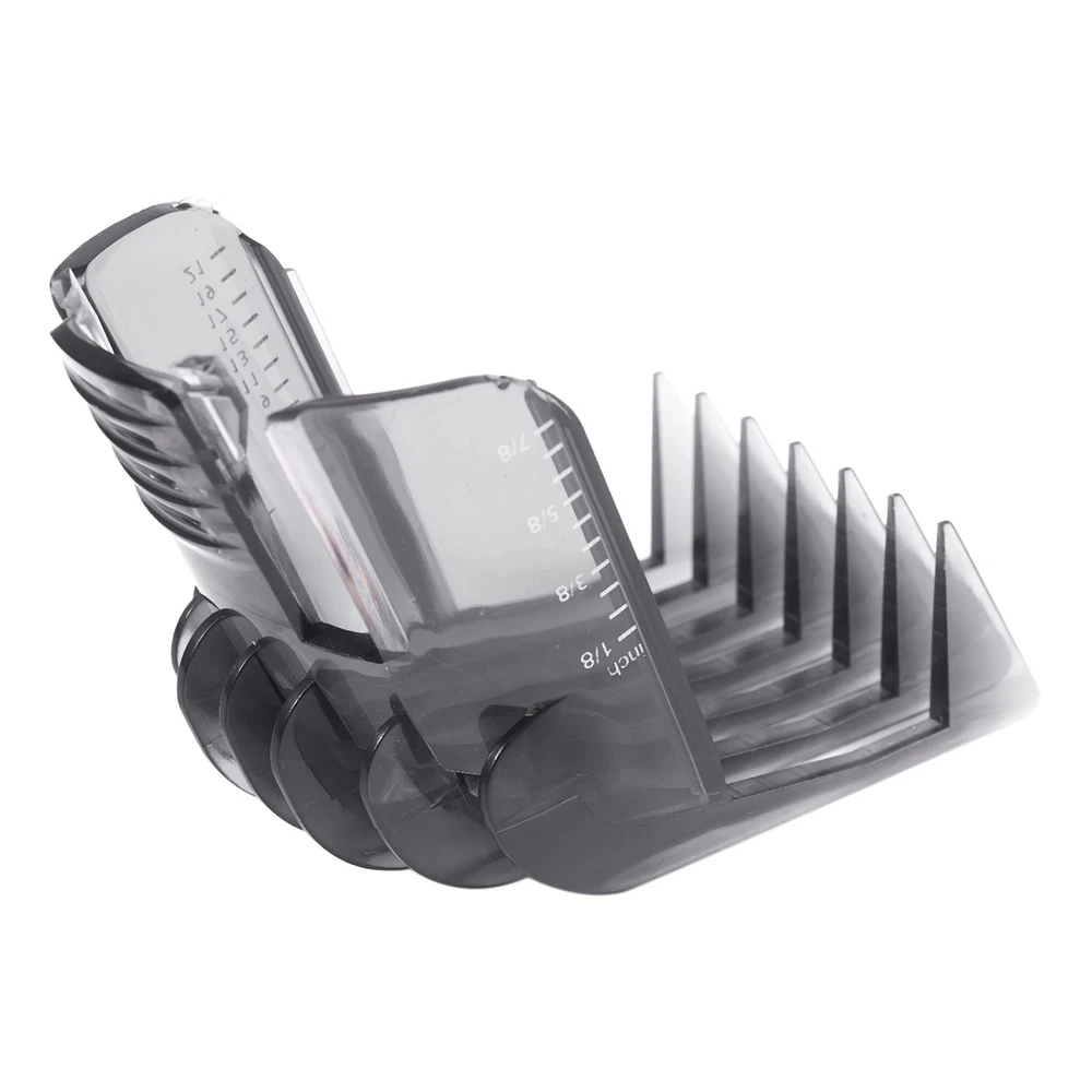 Hair Clippers Beard Trimmer comb attachment for QC5130 / 05/15/20/25/355153 and high quality Hair Grooming Comb For Shaver;Electric shavers offer the fastest way to shave Replacement shaver foils and cutters offer a quicker shave Help you save the time;Great present for men Fit for: QC5130 QC5105 QC5115 QC5120 QC5125 QC5135 Color: Black material: plastic Size: 90.5 x 37.4mm Weight: 15g Package Contents:1 x Hair Grooming Comb Note:Light and different displays may cause the color of the item in the picture a little different from the real thing. The measurement allowed error is +/- 1-3 cm.