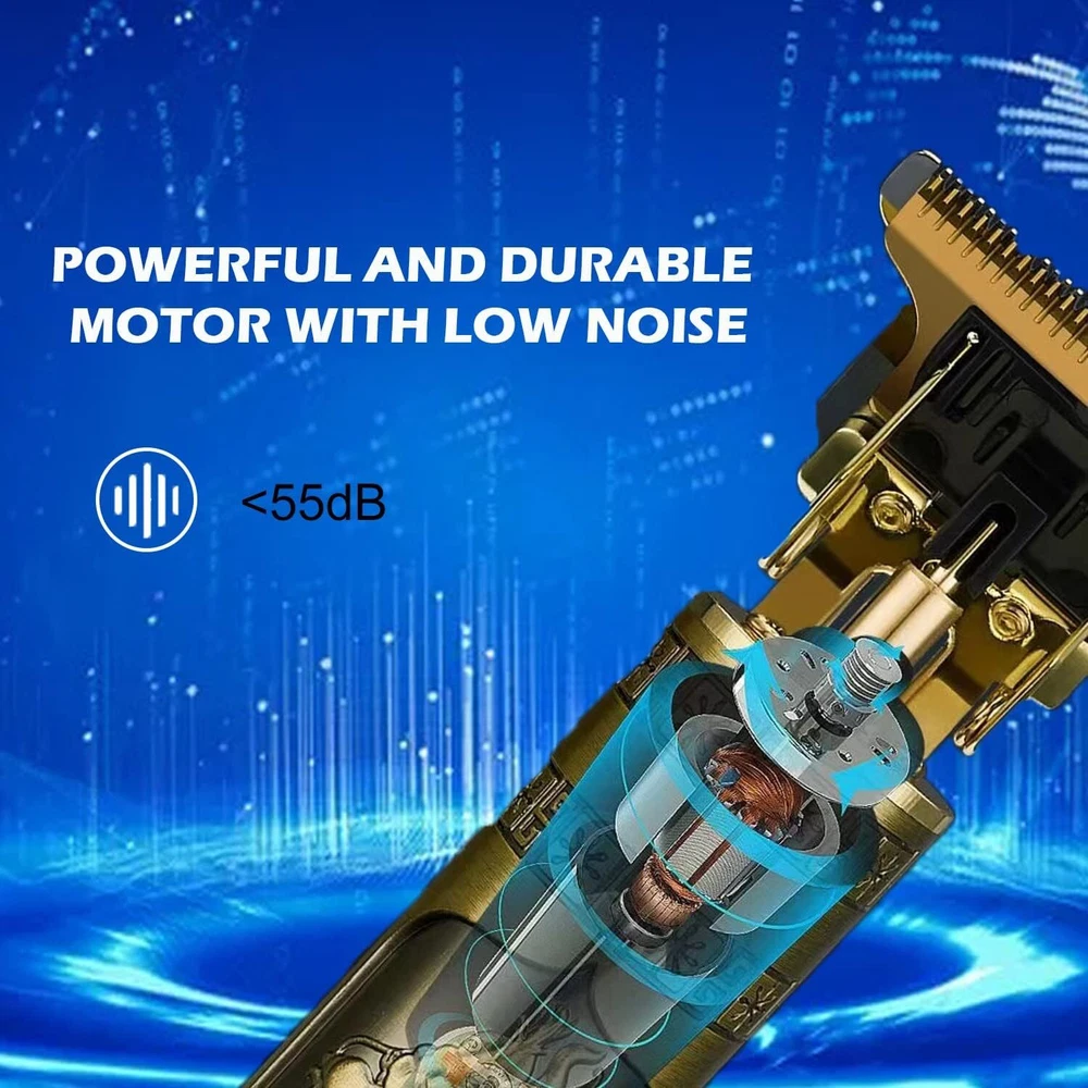 T BLADE TRIMMER: Professional hair clipper for men is equipped with a sharp blade that can easy to trim hair, beard, sideburns, face, and body hair. The R-shaped obtuse edge design ensures the safety and comfort of the haircut. Great for beginners or professional hairdressers. USB CHARGING SUPPORT: The T blade hair trimmer for men with equipped with rechargeable battery that provide over 180 minutes of run time after 2.5 hours full charged. The USB charging port allows you to connect USB devices such as USB adapters, laptops, car chargers, mobile power adapters, etc. The cordless design is convenient for families and travel. POWERFUL MOTOR & LOW NOISE: The beard trimmer with a powerful rotary motor, smooth and does not get stuck in the hair. Stronger power and less noise. Noise is less than 60 decibels. The cutter head can be washed directly with water. Note: Please do not let water into the body. WIDE APPLICATION: The zero gapped trimmer has four different lengths of guide combs (1.5mm / 2mm / 3mm / 4mm), you can use it according to the length of hair you want. Suit for hair trimmer, beard trimmer, shavers, edgers clippers, and so on. It's widely used for men women or elderly. GREAT GIFT: The hair clipper with lightweight and stylish design, is comfortable to hold. one-button ON/OFF, easy to use. Hair clippers are the best gifts for men, husband, friends and father on Christmas, Birthdays, Valentine's Day, and Father's Day. Product Description ZERO GAPPED TRIMMER HAIR CLIPPER Men hair trimmer is suitable for oil head, carving, vintage hairstyle and other hair design, a perfect gift for your family and friends. Professional Electric Hair Clippers Cordless and convenience. T-blade design: easy to trim hair, beard, sideburns, face, and body hair. Zero Gap: ensures the safety and comfort of the haircut. Easy to clean: Easy to keep clean and avoid bacteria buildup. Ergonomic Design: Comfortable grip, not easy to slide. Characteristics: Color: Metallic-Black, Dragon-Gold Charging: Type-C USB 2 hours of charging, 2 hours of use Packaging 1 * Hair Trimmer 4 * Limit Comb 1 * USB Cable 1 * Cleaning Brush 1 * Operating Instructions Self-Sharpening Precision Blades The sharp stainless steel precision blades, easy to trim hair, beard, sideburns, face, and body hair. Strong Power & Low Noise Power motor delivers efficient cutting speed, reducing friction, achieves quick, and precise clipping. Stronger power and less noise. Easy To Clean The cutter head can be washed directly with water. Note: Please do not let water into the body.