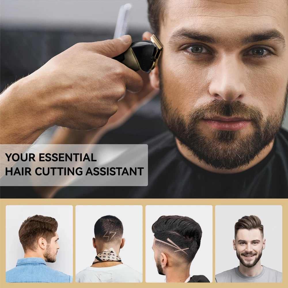 ✂【Premium Blades & Close Shave】Our premium T-shaped blade provides smooth and precise trimming. Whether you need to trim your body hair, mustache, or complete a linear trim of your hair, this zero-gap trimmer can give you a clean and close shave without pulling or missing any hairs. Perfect for both home use and barber supplies ✂【Multiple Charging Modes & Portable Design】With a built-in 1200mAh rechargeable Lithium-ion battery, this cordless hair clipper provides over 180 minutes of nonstop running time after 2 hours of charging. You can take this hair clipper with you wherever you go, which can be your first choice for travel ✂【Powerful Motor & Low Noise】Equipped with a powerful high-speed motor, this barber clipper offers 3 speed modes to cut hair of different thicknesses. With a noise level of 55 decibels or less, our hair shavers provide a quiet environment while running, so you won't wake up your sleeping wife and kids ✂【Incorporated Digital Display & Ergonomic Design】Our smart beard trimmer has a bright digital display which indicates the battery level. This comfortable grip makes it easy to trim along the contours of the face or hairline for a smooth and precise shave, leaving your skin looking and feeling great which is perfect for beard grooming. It also provides two indicator lights to remind you when the battery is low or when the blade needs to be lubricated ✂【Wide Application & Perfect Gift】This home hair cutting clipper kit comes with 3 guide combs of different lengths (1.5/3/4.5 mm). You can trim your ideal hairstyles with or without these guide combs. A multifunctional tool for hair trimming, beard grooming, body shaving and more. Suitable for adults, children and even pets. An excellent gift for boyfriend, husband, or father