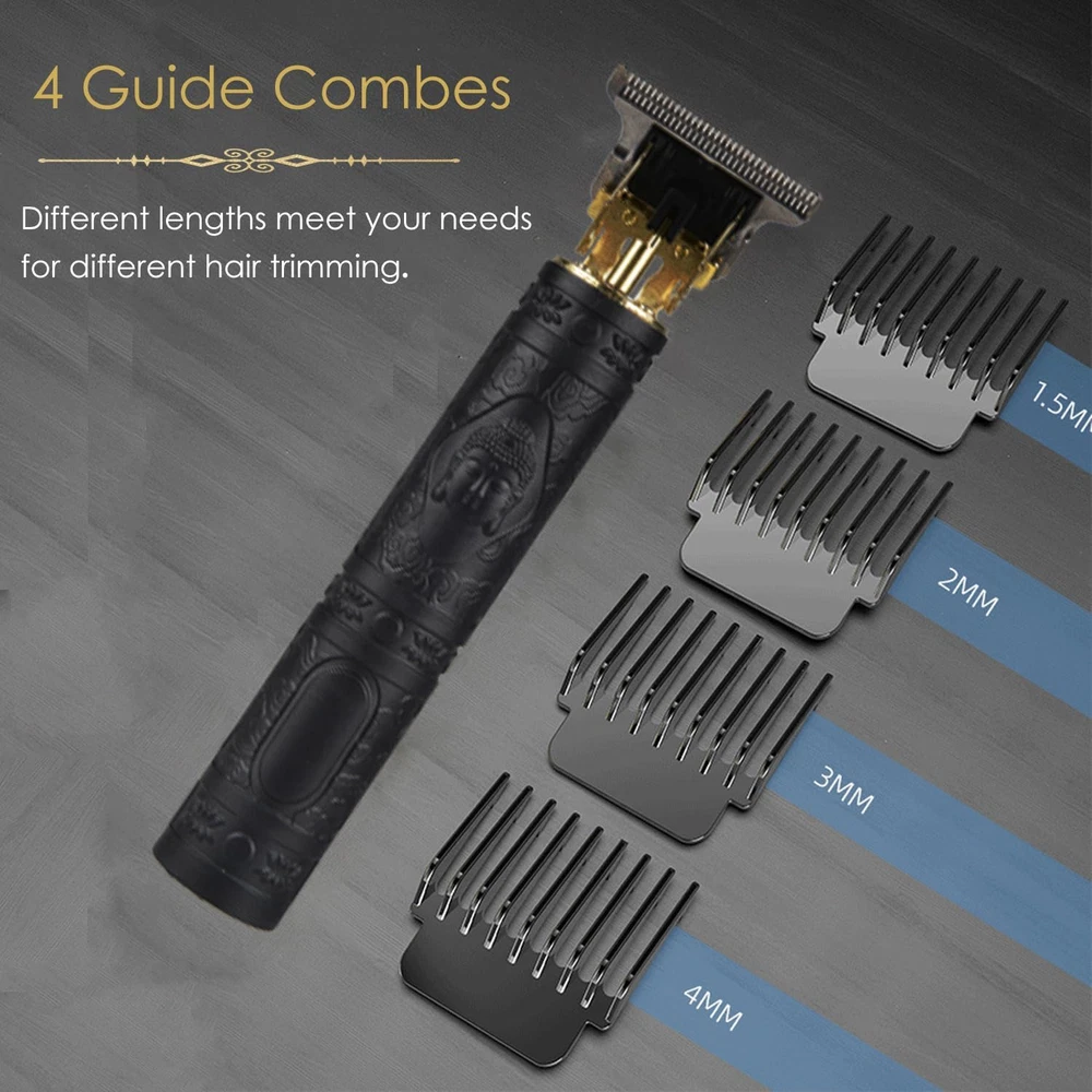 T-shaped hair clipper: The professional hair clipper is made of carbon steel and self sharpening ceramics, making it easy to trim hair, beard, sideburns, facial and body hair. R-shaped blunt edge design, gentle contact with the skin, can better protect your skin. Both beginners and professional hairdressers can easily use it. Multi functional hair clipper: The hair clipper has four different lengths of guide combs (1.5mm, 2mm, 3mm, 4mm), which can be used according to the hair length you want. Very suitable for cutting hair, trimming beards, men's razors, men's hair cutting pads, men's trimming shears, and more. USB fast charging: The men's trimmer is equipped with a powerful lithium-ion battery, which can work for at least 180 minutes after being fully charged for 2.5 hours. The cordless design makes it easy for you to carry while traveling or at home. You can connect USB adapters, laptops, car chargers, power banks, and other USB powered devices. Powerful motor: The beard trimmer is equipped with a powerful rotating motor for fast trimming. Higher power and lower noise. It is powerful and sharp, capable of evenly cutting hair while maintaining low noise control. [Note]: Only the cutterhead can be cleaned with water. Please do not allow water to enter the body. Ergonomic Design&Excellent Gift: The T-blade trimmer is stylish, lightweight, easy to carry, and comfortable to hold. All metal body, wear-resistant and durable. It is given to men, husbands, friends, and fathers on New Year's Day, Christmas, birthdays, Valentine's Day, and Father's Day. T-shaped hair clipper: The professional hair clipper is made of carbon steel and self sharpening ceramics, making it easy to trim hair, beard, sideburns, facial and body hair. R-shaped blunt edge design, gentle contact with the skin, can better protect your skin. Both beginners and professional hairdressers can easily use it.