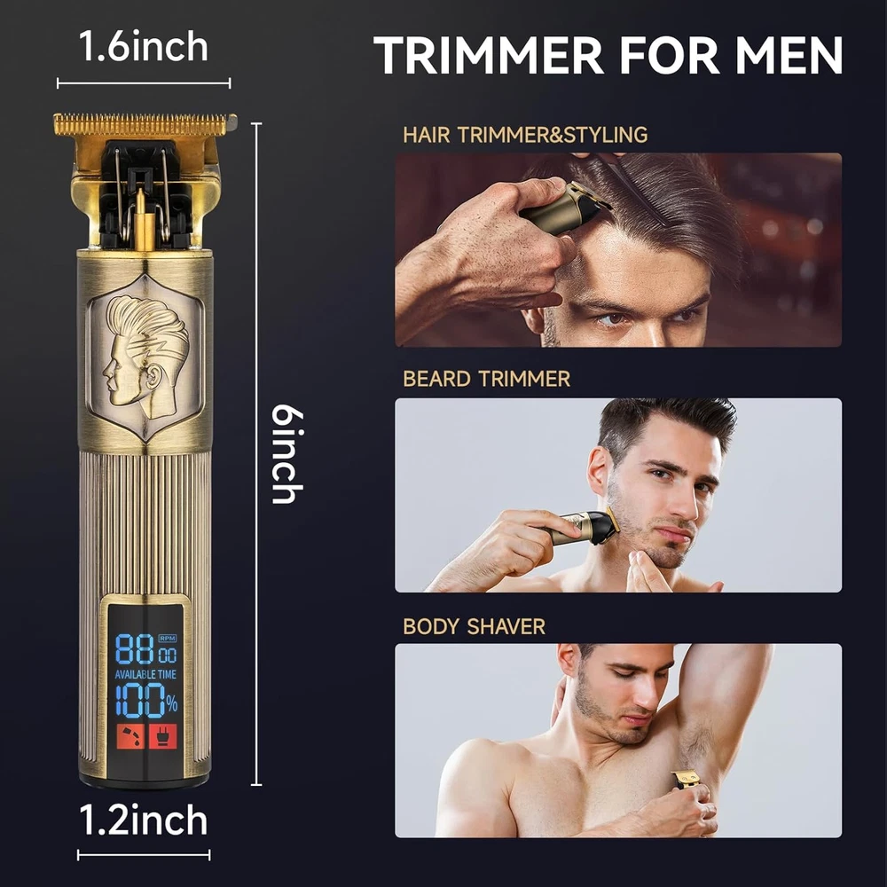 【Premium T Blades & Zero Gapped Hair Trimmer】T Blade is made of alloy and can be close to the skin for a zero-gap trim, giving you a clean and close shave without pulling or missing any hair. Say goodbye to skin irritation and cuts. Say goodbye to expensive salon visits and achieve your desired hairstyle with confidence and ease. 【Ergonomic Design】Our clippers for hair cutting adopts an ergonomic handle, which is comfortable to grip, easy to operate, reduces hand fatigue, and can better control the direction of hair cutting to achieve your ideal styling effect. 【Cordless Clippers & USB Rechargeable & Smart Display】USB cable can be compatible with any USB charger interface. Easy to carry and use. It only takes 2 hours to fully charge and provides up to 180 minutes of working time. There is also an lcd display on the hair clipper to remind you of the battery, no more worrying about when to charge. 【Multifunction Mens hair clippers】Professional mens hair trimmer can meet any man's hair styling needs, such as such as lining, sculpting outline, sideburns, also can be used to trim beard and body hair. Keep your look fresh, polished, and on-trend with our reliable and efficient t liners clippers! Upgrade your grooming routine today! 【Best Gift Choice】Our t blade trimmer is equipped with three guide combs (1.5mm,3mm,4.5mm), Lubricating oil, blade cover,USB cable, a comb and a brush.This edgers clippers is the perfect gift for the special man in your life on Christmas Day, Valentine's Day, Father's Day, etc. Product Description
