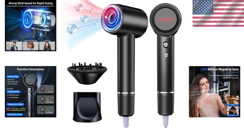 UPC:Does Not ApplyMaterial:Plasticgtin13:Does Not ApplyProduct Dimensions:10 X 5 X 10 Inches; 3.06 PoundsPower Source:Electric, Corded ElectricCountry of Origin:ChinaBrand:UnbrandedColor:BlackPower:1500 WattsType:Professional Hair DryerFeatures:Adjustable Heat Settings, Ionic Technology, Diffuser, High-Speed Brushless Motor, 500 Million Negative Ions, Detachable Magnetic Diffuser, Low Noise, Fast Drying, Long Service Life, Stable Performance, Scientific Air Duct Design, Even Heat Distribution, Salon-Level Curly Hair Care