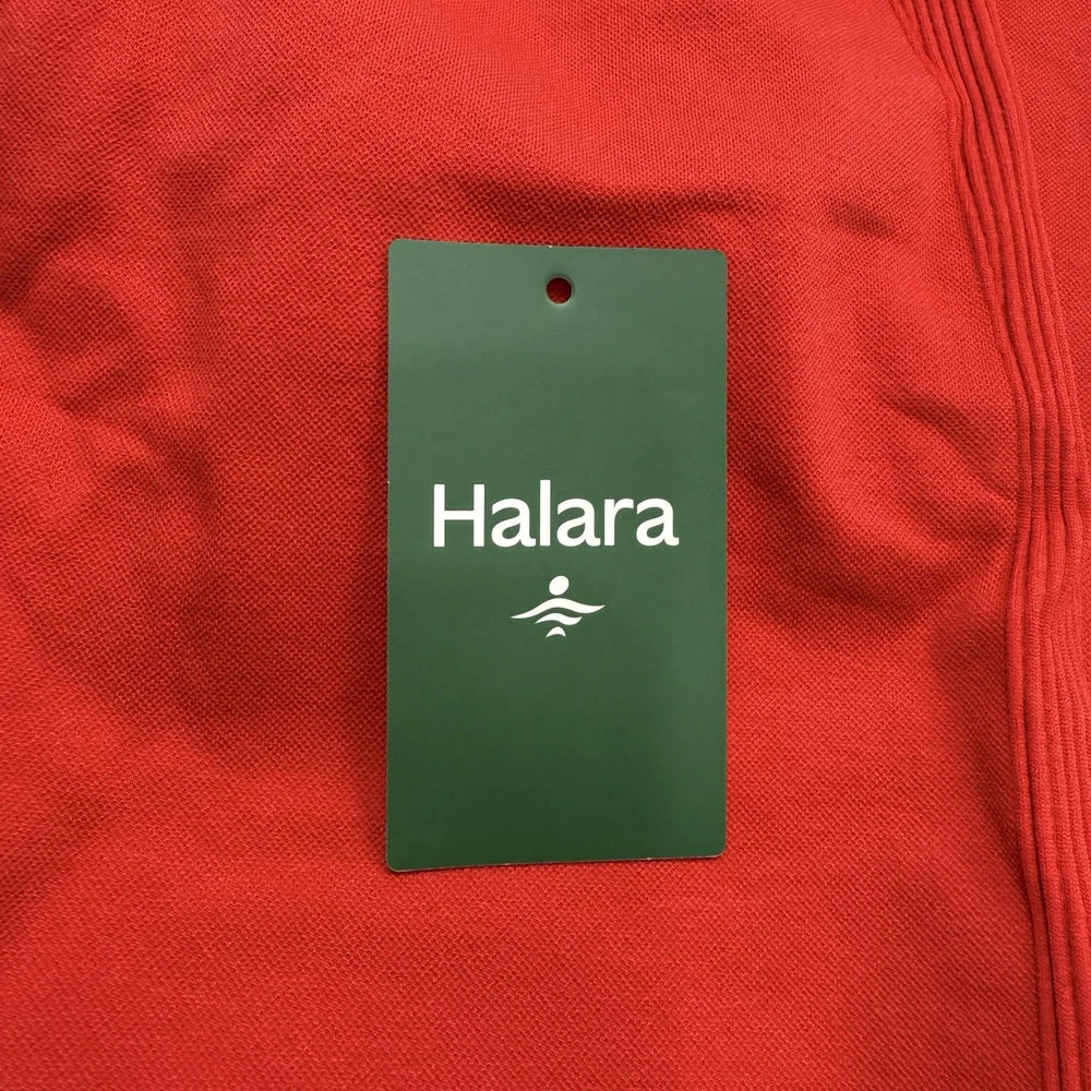 Type: Leggings Seller Notes: “Item is new but tag is detached.” Brand: Halara Features: Seamless Size Type: Regular Size: L Pattern: Solid Style: Ankle Department: Women Garment Care: Machine Washable Theme: Athleisure, Modern, Sports Color: Red Material: Nylon, Spandex