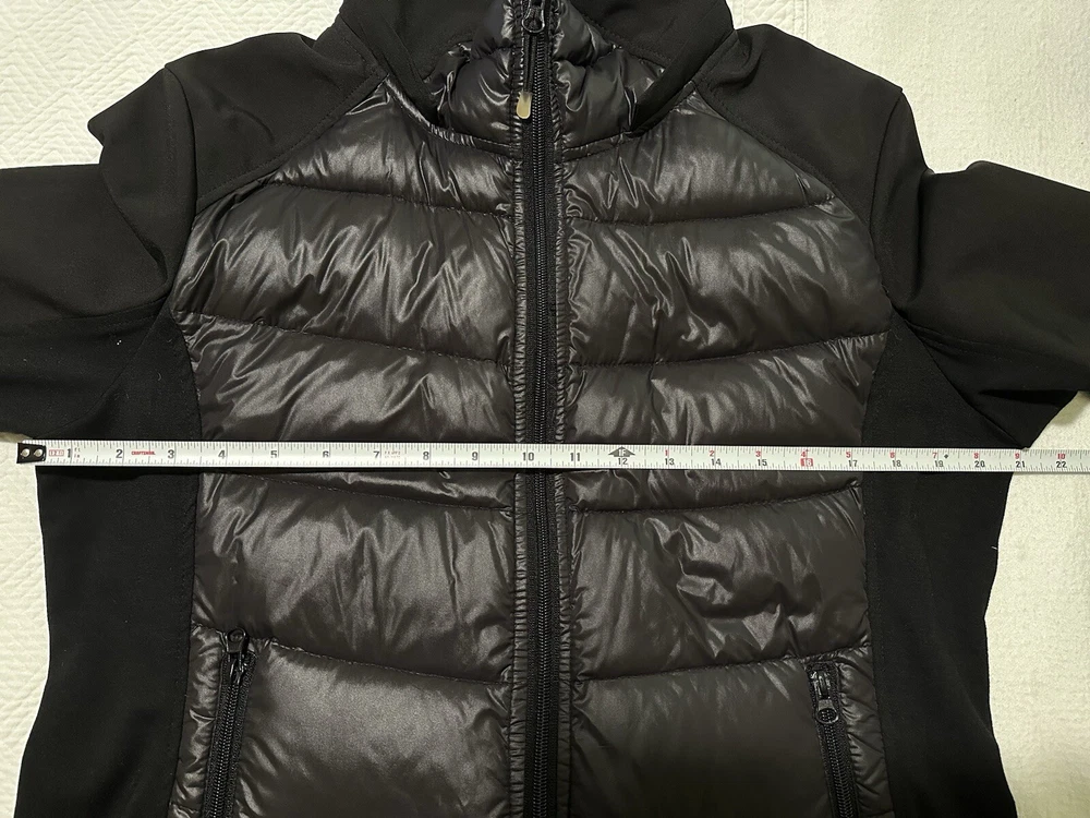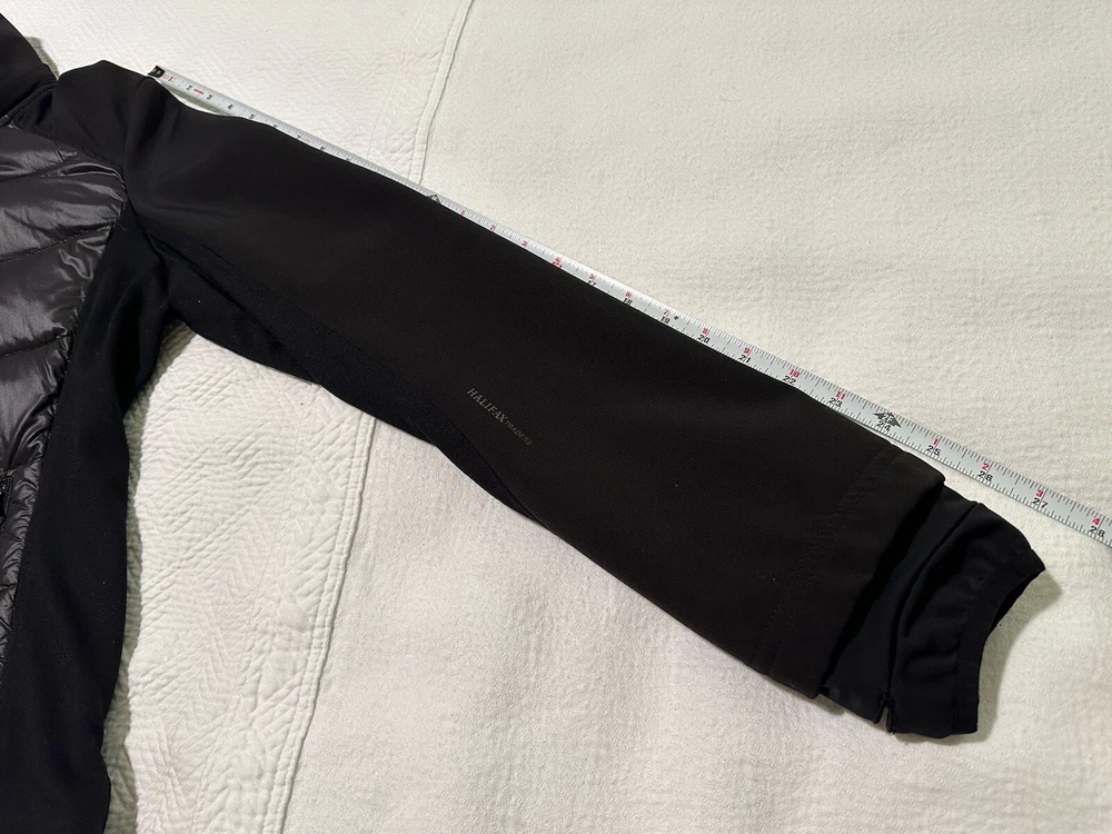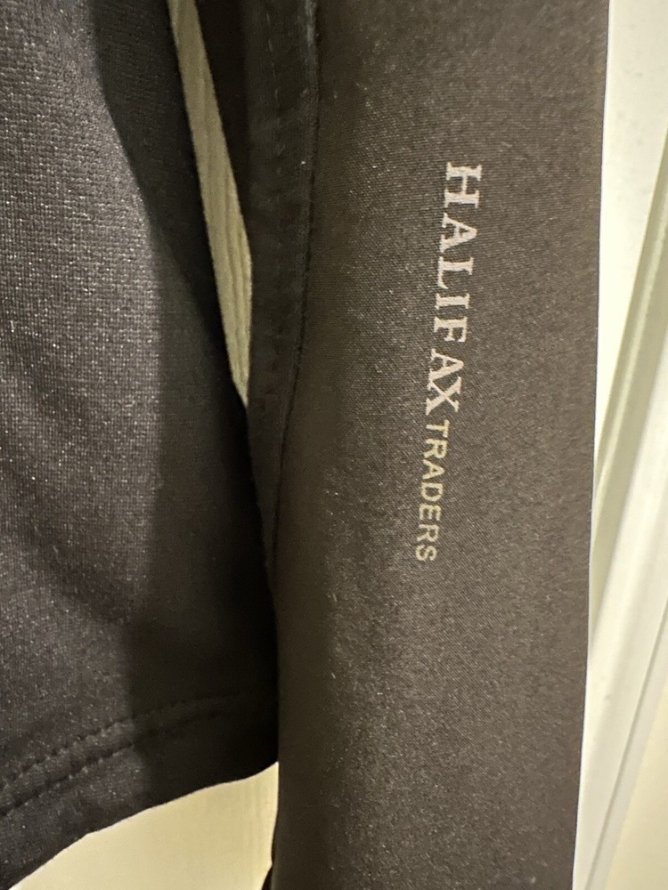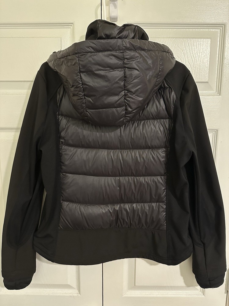 Halifax Traders Black Down Puffer Jacket. Full Zip, Removable Hood, Size L Women In gently used conditions
