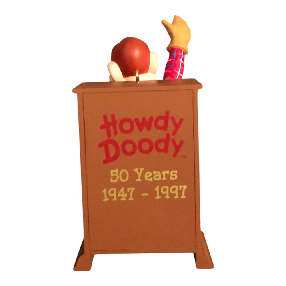 Celebrate classic television with this Hallmark Howdy Doody Christmas Keepsake Ornament, commemorating the 50th anniversary of this children’s favorite. Crafted in 1997, this charming small-sized ornament stands at 3.5 inches and is a must-have for collectors and fans of Howdy Doody. Complete with its original box, it's a nostalgic piece that brings a touch of vintage whimsy to your holiday decor.