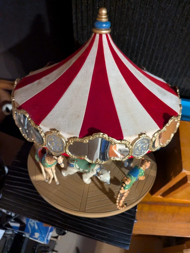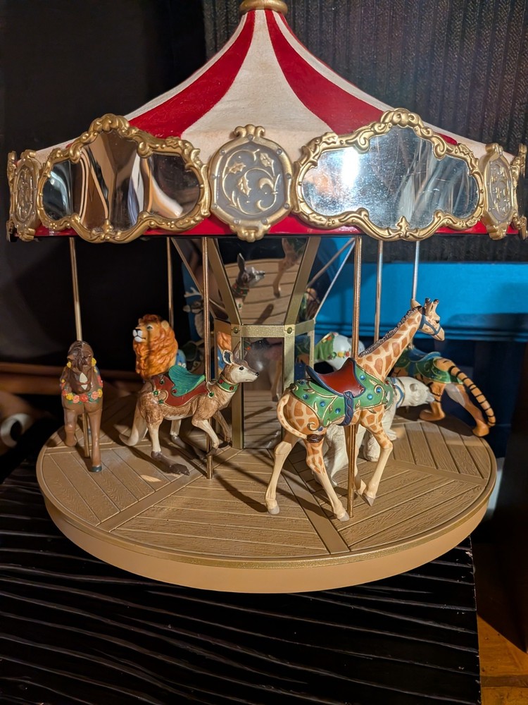 The Hallmark 2004 Keepsake Christmas Musical Carrousel is a festive ornament set that includes 8 animal-themed ornaments. Each ornament features a different animal design, perfect for Christmas celebrations. The set also includes lights and a musical feature, adding an extra element of charm to the holiday decor. This collectible item from Hallmark brings a touch of nostalgia and whimsy to any Christmas tree.