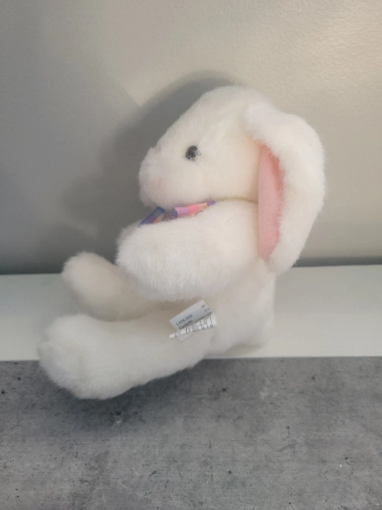 Hallmark Cards White Bunny Rabbit Plush W/Plaid Bow Stuffed Animal Toy Blushing Measures roughly 9 inchs and has been well cared for and gently loved from a pet free smoke free home