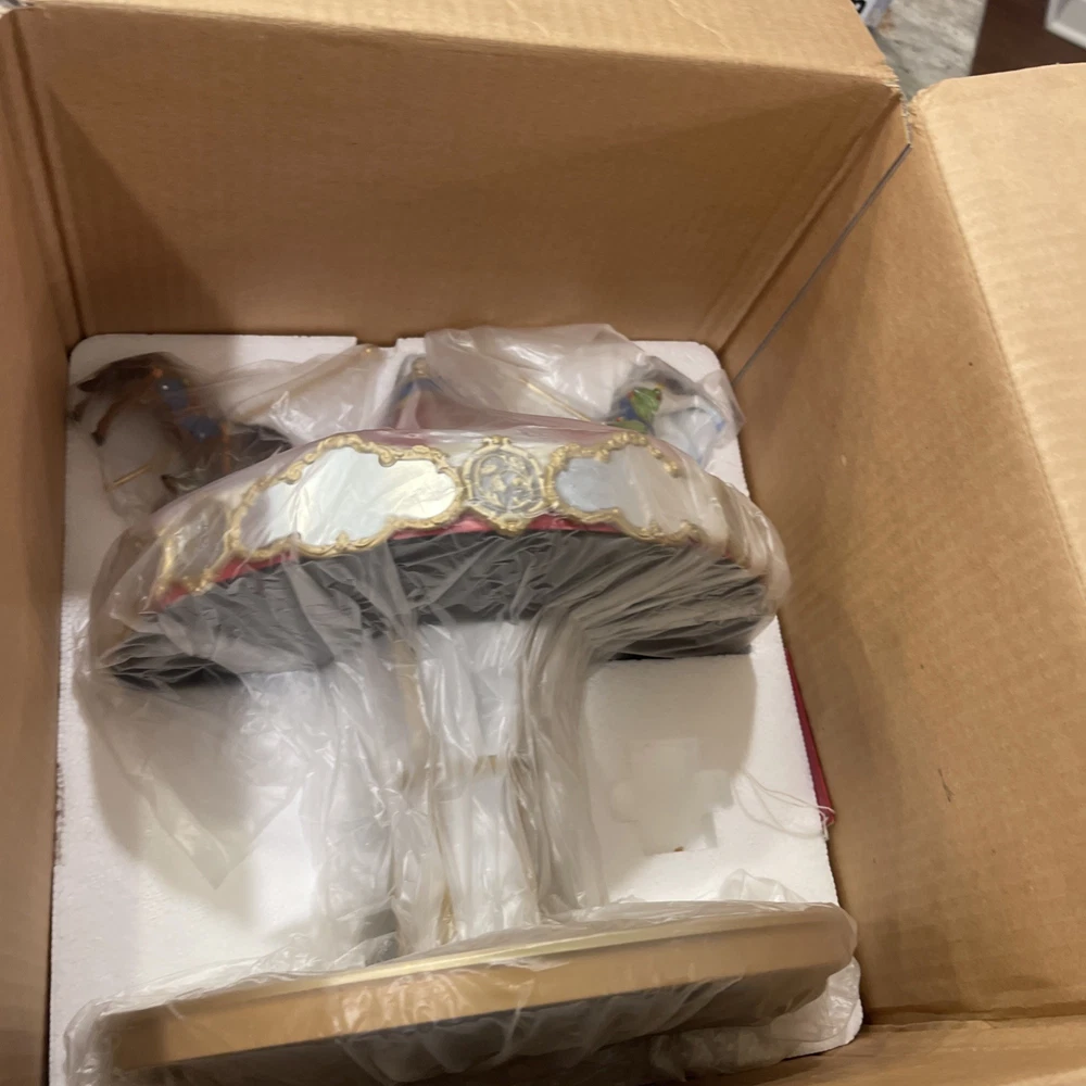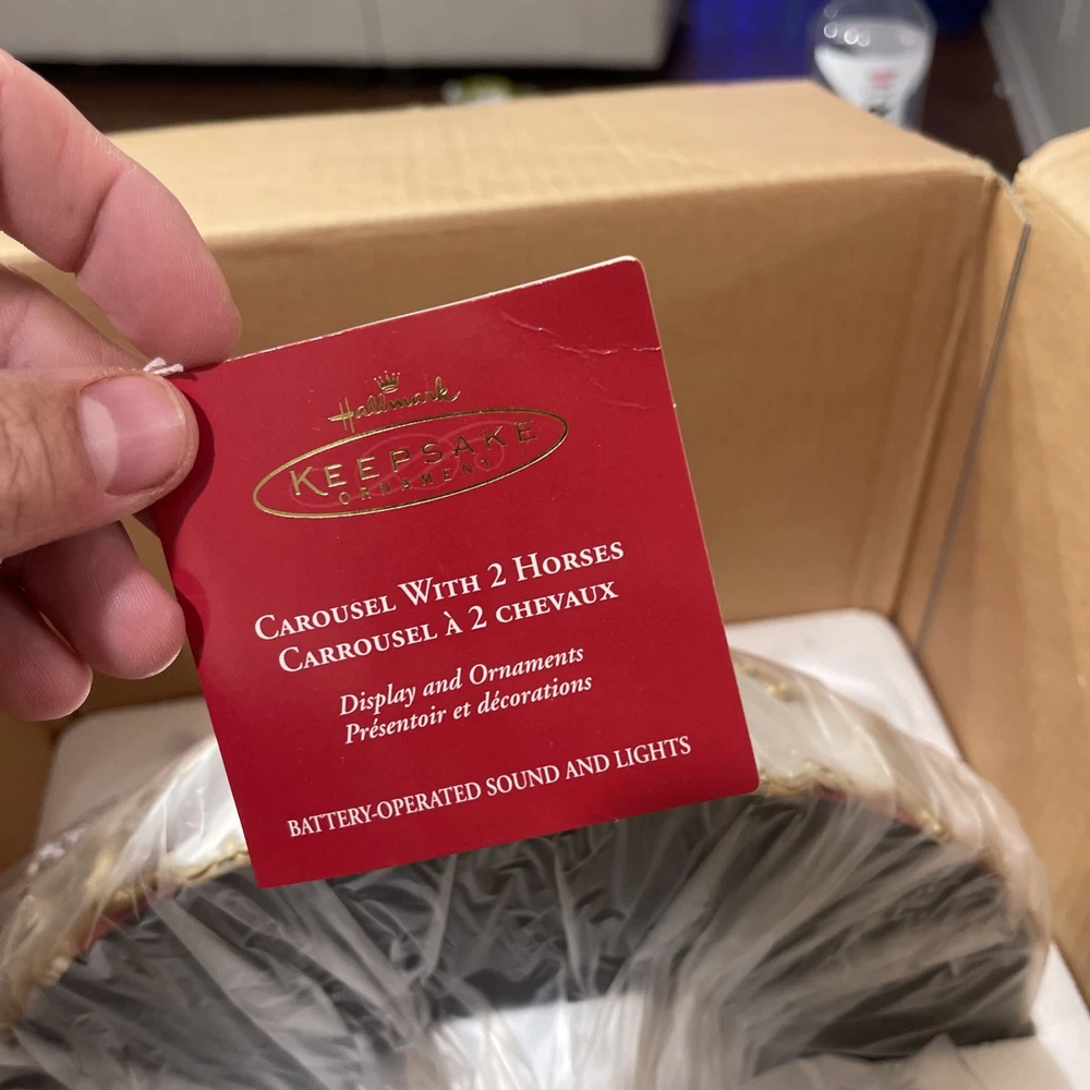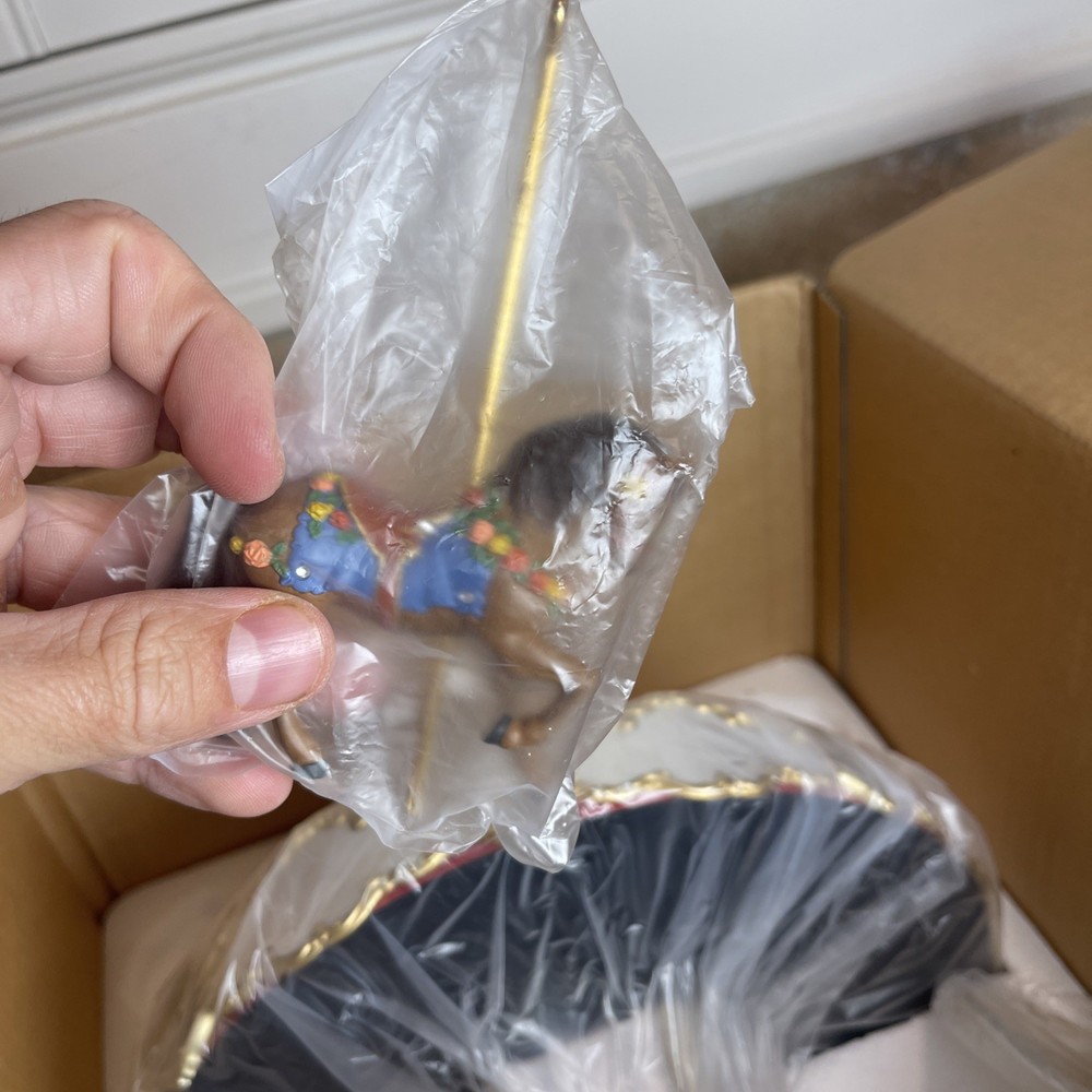 This Hallmark Carousel Display with 2 Horses is a brand new collectible from 2004, featuring a colorful multicolor design perfect for Christmas. Made of plastic and sealed in its original packaging, this display is a charming addition to any holiday decor collection. With its nostalgic design and high-quality craftsmanship from Hallmark, this piece is sure to bring joy and festive spirit to any home during the holiday season.