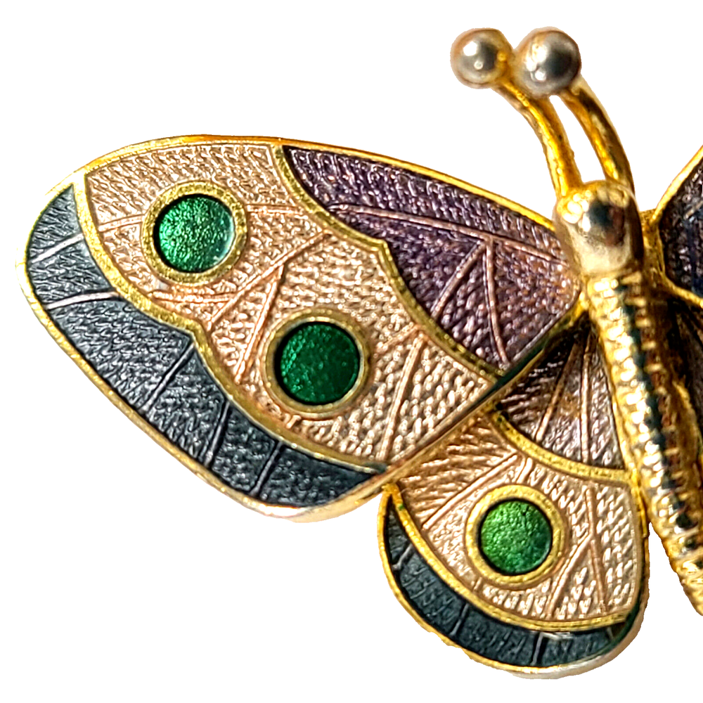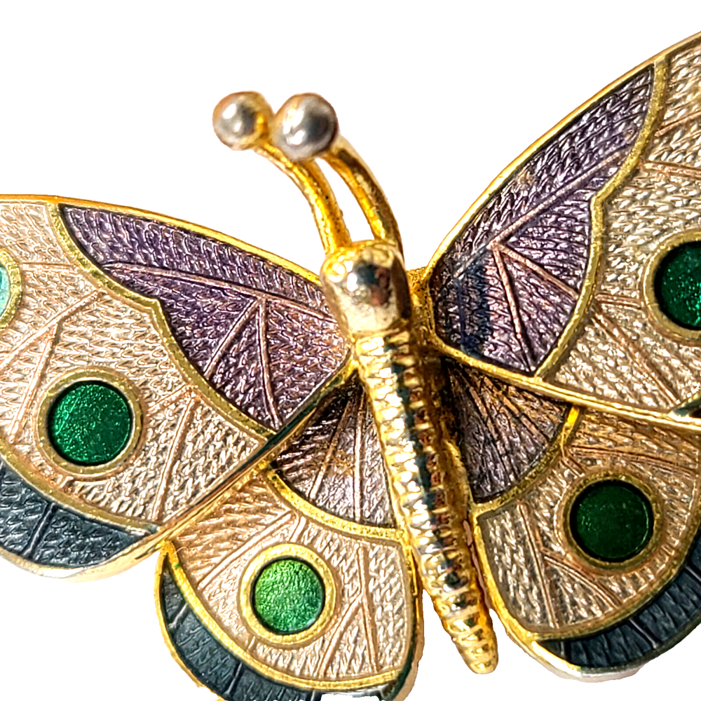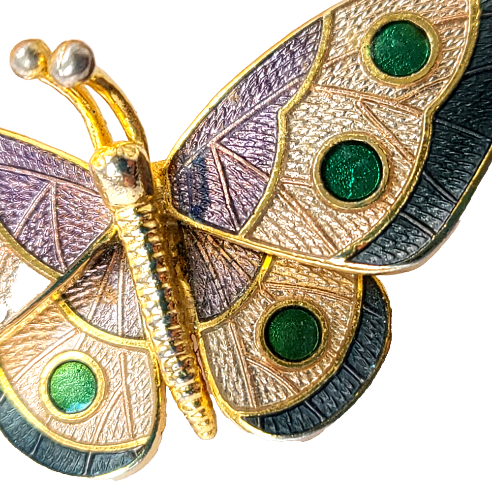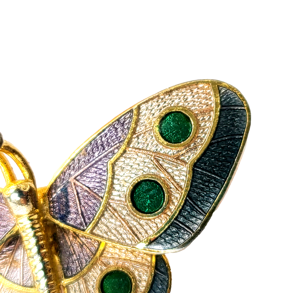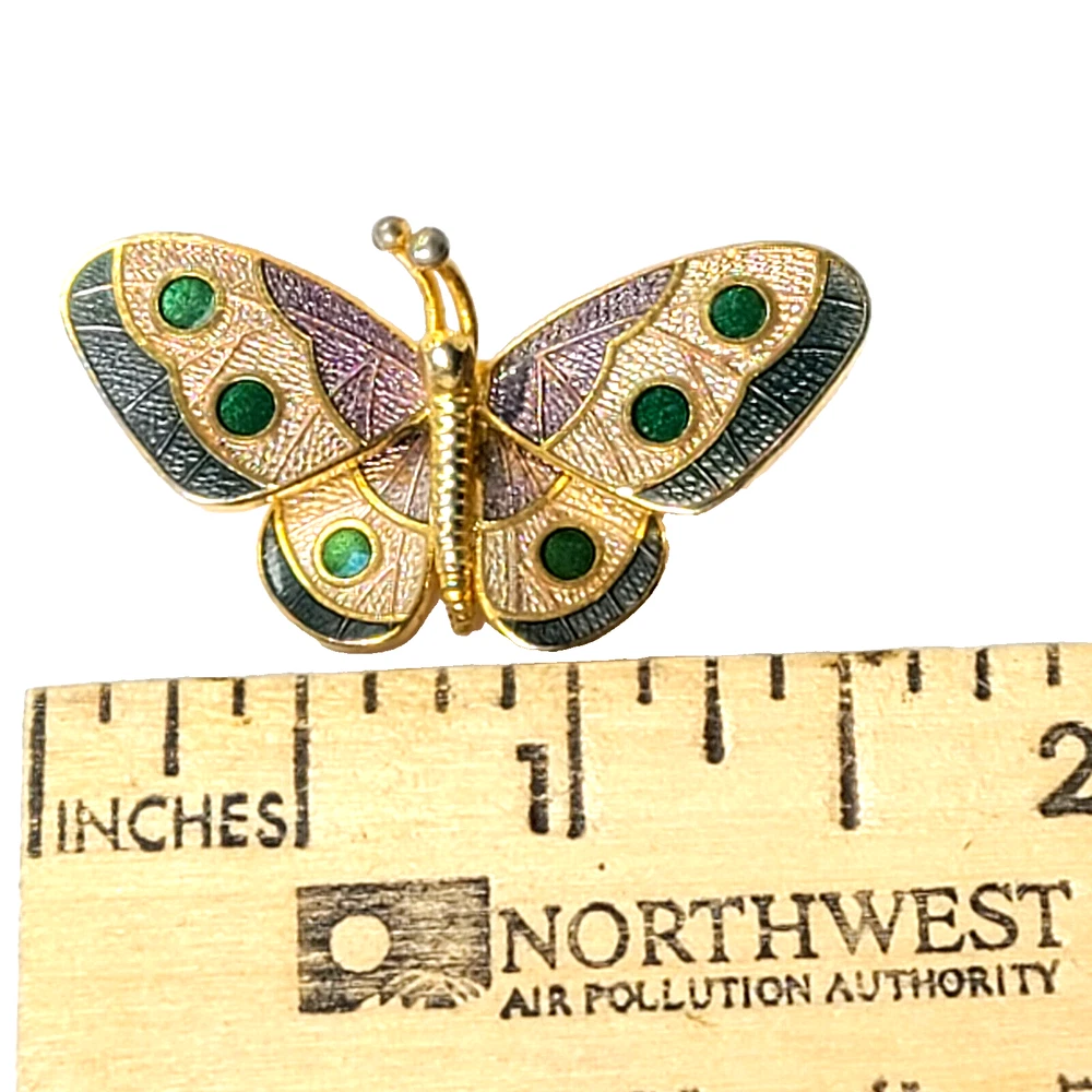 Country/Region of Manufacture: Unknown Handmade: No Personalize: No Color: Multicolor Country of Origin: Unknown Type: Brooch Customized: No Item Length: 1.5" Metal: Gold-Tone Wholesale: No Signed: Yes Material: Enamel, Metal Brand: Hallmark Theme: Animals & Insects, Butterfly Antique: No Shape: Butterfly