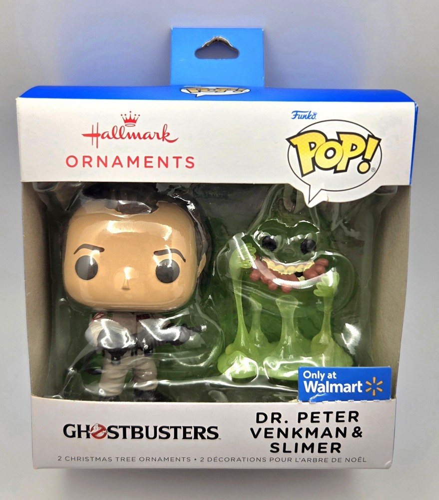 *Free shipping with USPS Ground Advantage. Ships ASAP. Packaged with care. Smoke-free home.* Please note that the box has some imperfections as shown in the attached pictures. The Hallmark Ornaments Funko POP! Ghostbusters Dr. Peter Venkman & Slimer 2-pack exclusive features small multicolor ornaments of Dr. Peter Venkman and Slimer from the Ghostbusters franchise. Manufactured in 2024, these 3-inch tall collectibles are part of the Funko collection and come boxed for display. Made in China, the set includes two hanging ornaments and is a must-have for fans of the Ghostbusters movies.