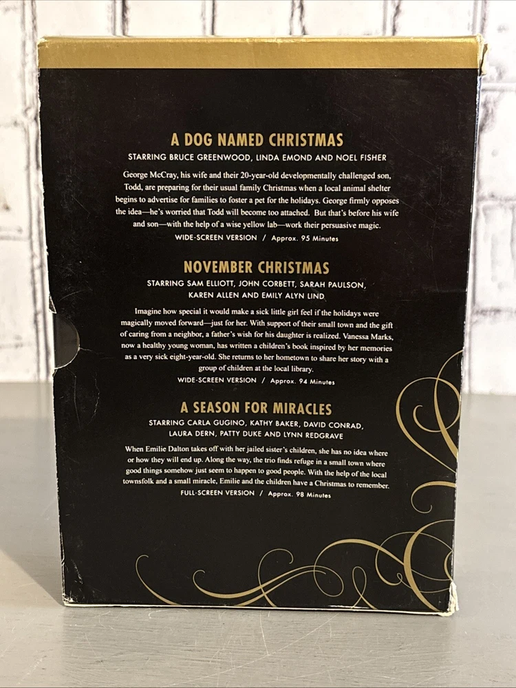 This Hallmark Hall of Fame Christmas Collection Triple Feature DVD Set is the perfect addition to your holiday movie collection. The set includes three classic Christmas movies: A Dog Named Christmas, November Christmas, and A Season For Miracles. The DVD set features both full-screen and widescreen formats. Get ready to enjoy the holiday season with this wonderful collection of Christmas movies.