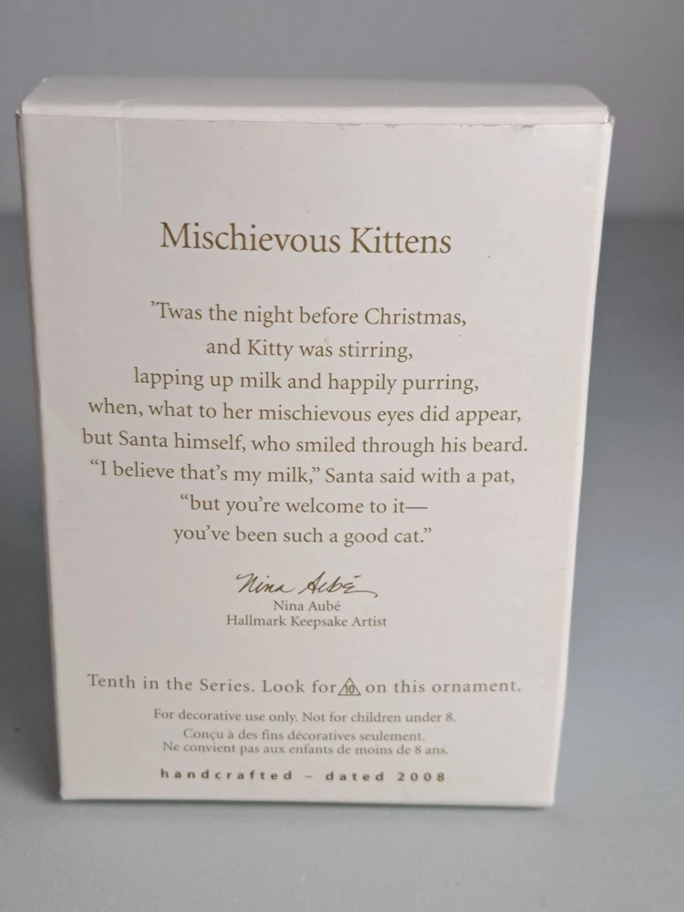 Hallmark Keepsake 2008 Mischievous Kittens #10 in Series Ornament is in Nice Like New Condition w/ Box. SUPER CUTE!!