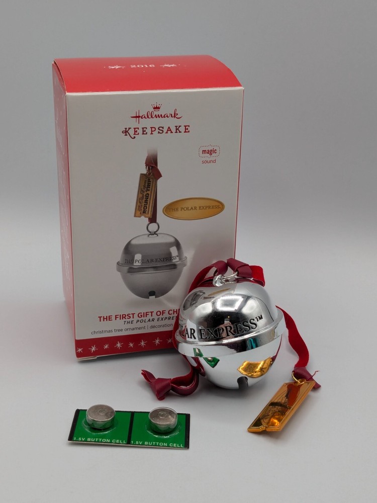 Celebrate the magic of The Polar Express with this Hallmark Keepsake First Gift of Christmas ornament. Designed by Rodney Gentry, this artist-crafted piece features Magic Sound and plays memorable moments from the film. Pre-owned in excellent condition, it includes batteries (exact number needed is unknown) but remains untested. The box shows minor wear due to age. A wonderful keepsake for fans of the holiday classic. We ship same day / next day! This item comes from a smoke-free and dog-free home. Our ornaments are carefully packed -- bubble wrapped and always shipped in a box -- to guarantee their safe arrival to you. #hallmark #hallmarkornament #hallmarkkeepsake #hallmarkornaments #hallmarkkeepsakeornament #polarexpress #christmasornament #cbtreasures