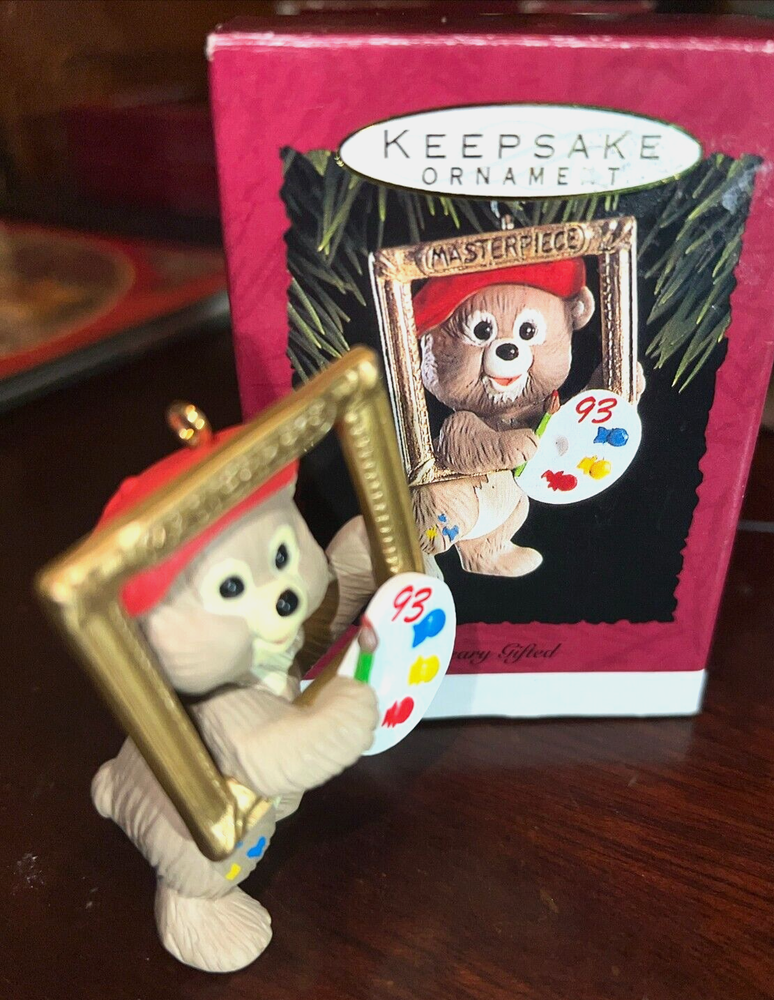 This "Hallmark Keepsake" Masterpiece '93 ornament is a perfect addition to your Christmas tree. The handcrafted design features a cute bear holding a picture frame, with intricate details that make it a unique and special ornament. It's a great choice for collectors or anyone looking to add a touch of whimsy to their holiday decor. The "Beary Gifted" Christmas ornament is part of the "Hallmark Keepsake" Christmas Ornaments collection and is perfect for any occasion. Whether you're looking for a gift for a loved one or just want to add some sparkle to your own home, this ornament is sure to delight. So why wait? Add this "Hallmark Keepsake" Masterpiece to your collection today!