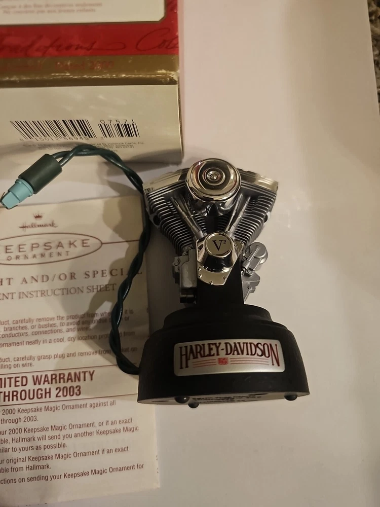 This Hallmark Keepsake Big Twin Evolution Engine ornament is a must-have for any Harley-Davidson fan. Featuring lights and motion, it brings the iconic engine to life. The ornament was manufactured in 2000 and is part of the Harley-Davidson collection. Perfect for adding a touch of holiday spirit to your décor, this ornament is sure to impress.