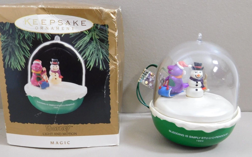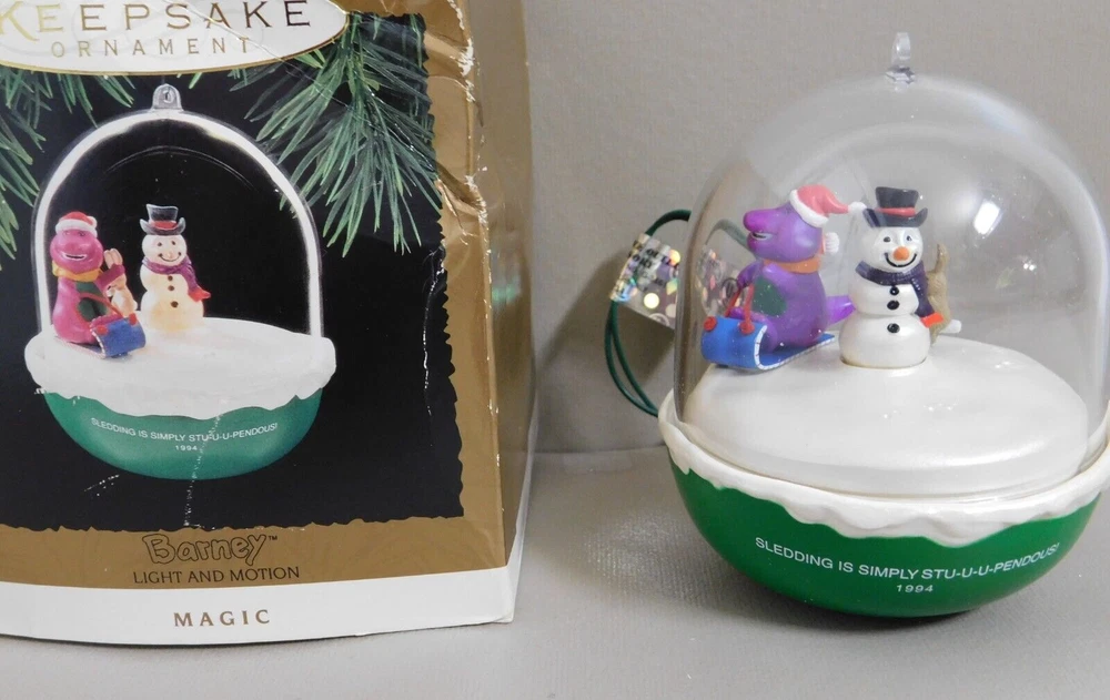 Hallmark Keepsake Christmas Ornament 1994 BARNEY & Snowman Magic Light & Motion