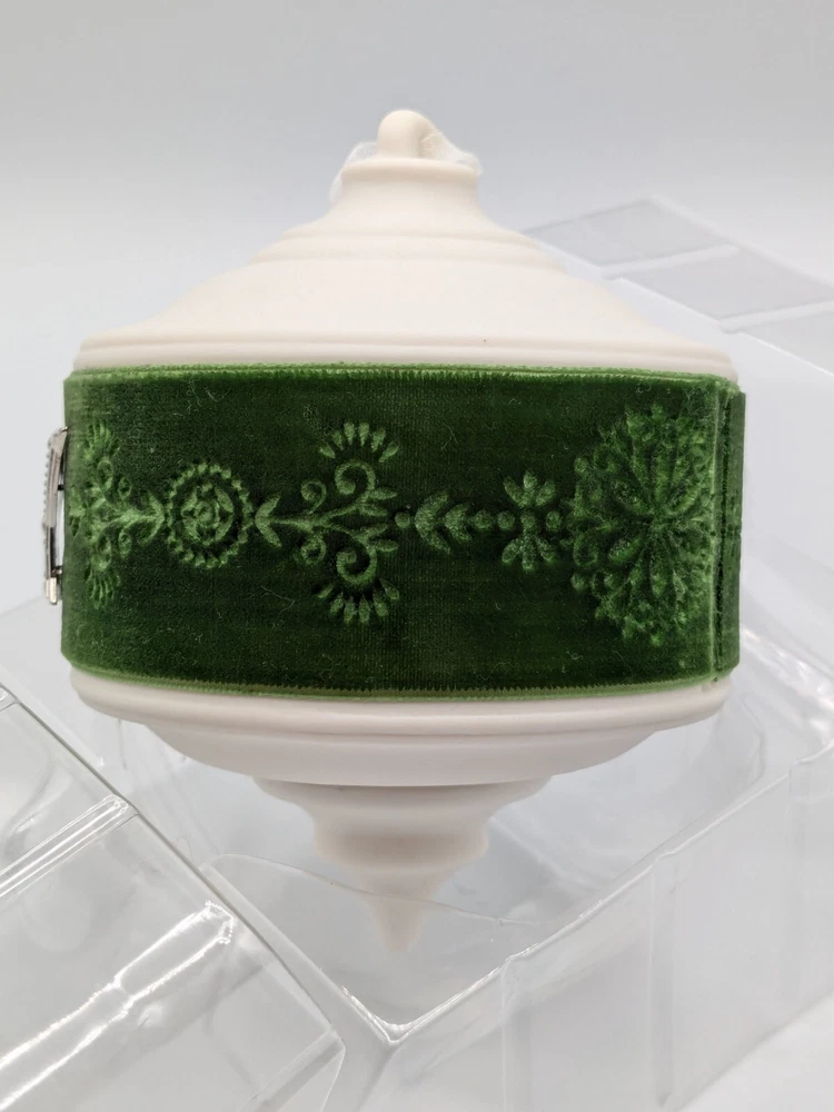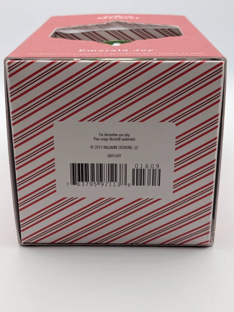 This Hallmark Keepsake Emerald Joy ornament from 2015 is crafted with porcelain and accented with velvet for a luxurious holiday touch. Pre-owned in excellent condition, it comes in its original box, which shows minor wear due to age. A timeless and elegant addition to your Christmas tree. We ship within one business day! This item comes from a smoke-free and dog-free home. Our items are carefully packed to guarantee their safe arrival to you. #hallmark #hallmarkornament #hallmarkkeepsake #hallmarkornaments #hallmarkkeepsakeornament #emeraldjoy #christmasornament #cbtreasures