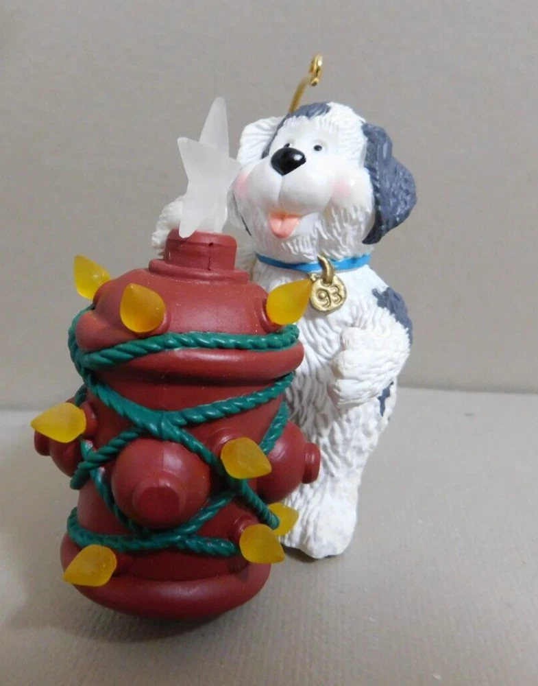 Year Manufactured: 1993 Shape: Dog Franchise: Hallmark Number of Items: 1 Collection: Ornaments Features: Hanging, Light Up Vintage: Yes Type: Ornament Subject: Best Friend Original/Licensed Reproduction: Original Antique: No Country/Region of Manufacture: China Brand: Hallmark gtin13: 015012026177 Material: Resin Theme: Pets Occasion: Christmas Set Includes: Lights, Ornament UPC: 015012026177 Custom Bundle: No MPN: QLX717-2 Time Period Manufactured: 1990-1999 Handmade: No Color: Multicolor