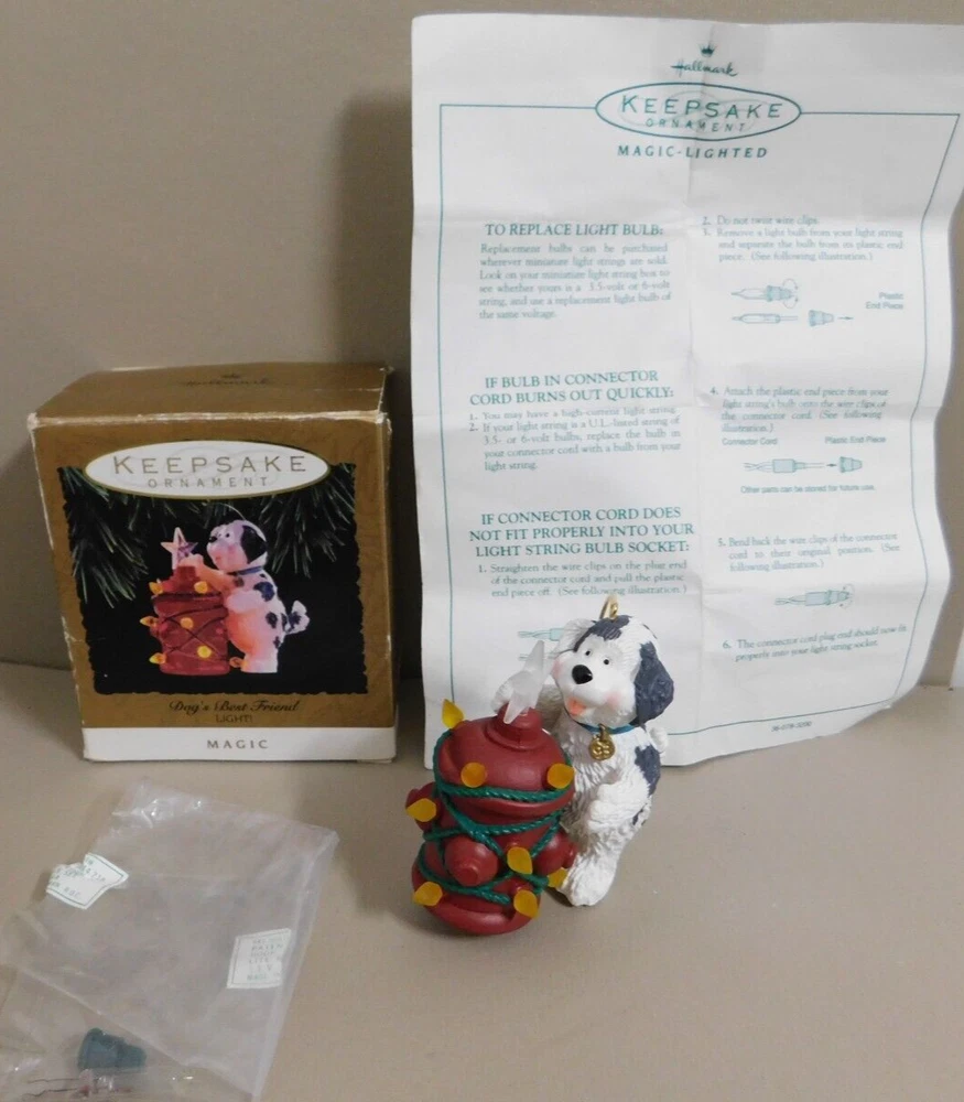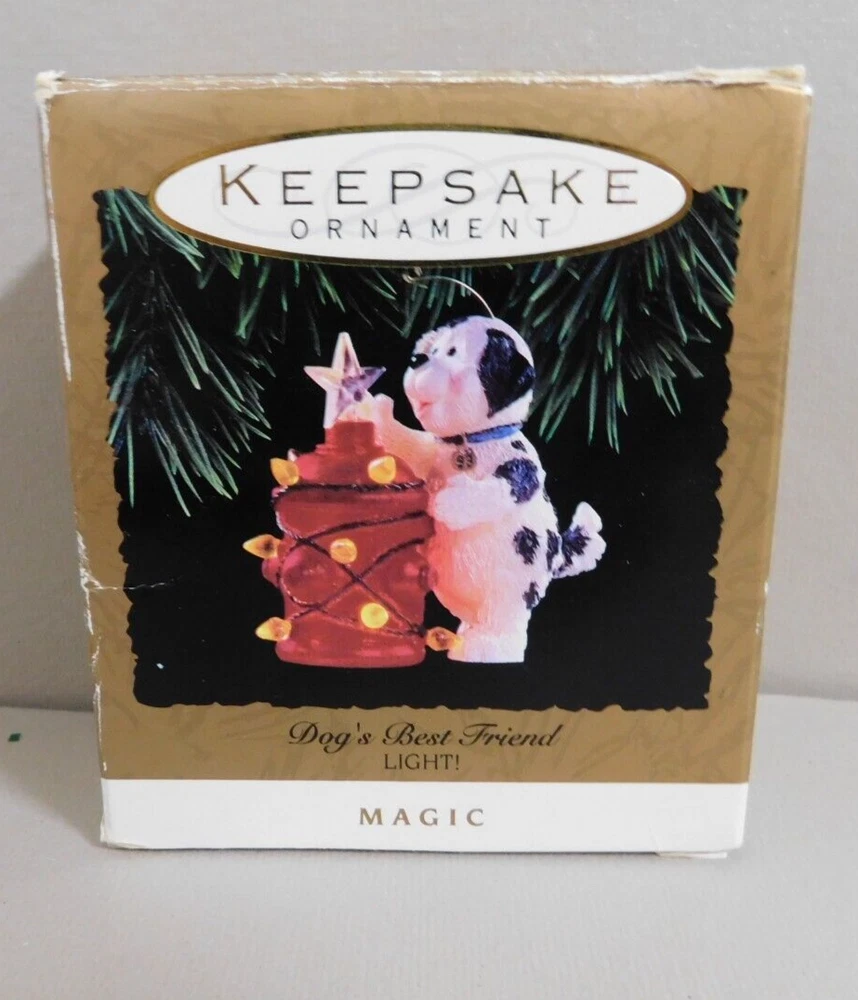 Hallmark Keepsake Light and Magic Christmas Ornament Dog's Best Friend 1993 Pre-Owned Ornament is in Excellent Condition. Box has some minor shelf wear. See pictures for actual condition. This ornament uses light from your lighting strand. Insert into bottom of ornament to light up ornament. Please see all pictures as they are part of the description. This is the actual item that you will receive Please ask any questions prior to purchase I do combine shipping Please check Shipping Details for additional shipping methods offered. Costs may vary depending on your location