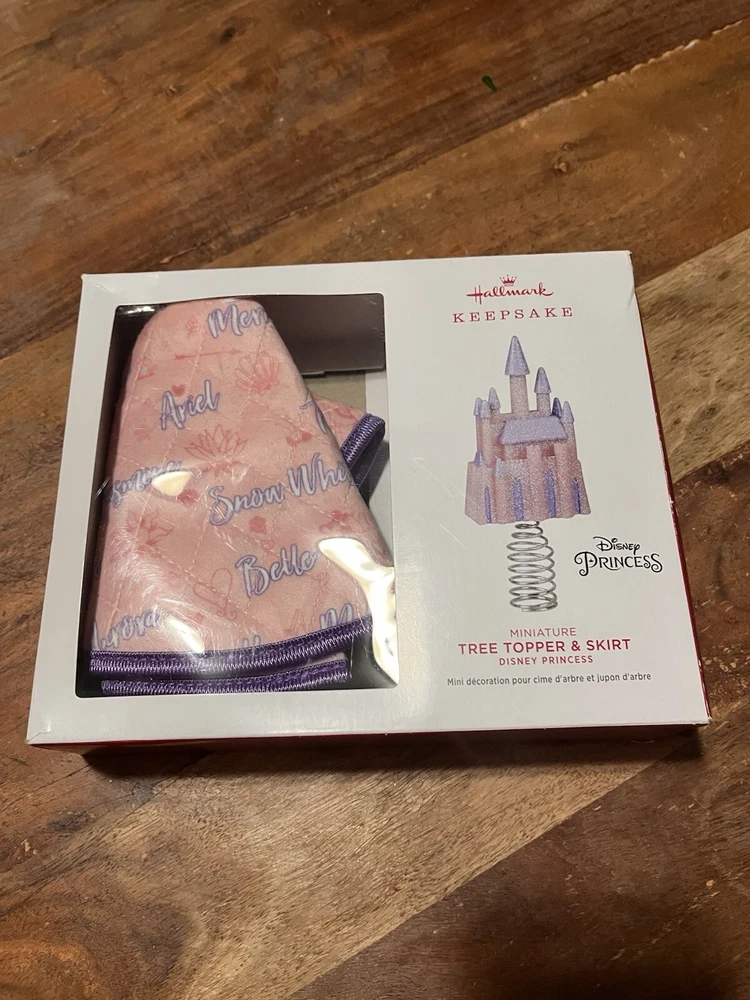 This Hallmark Keepsake ornament is a must-have for any Disney Princess fan. The miniature tree topper and skirt set features a beautiful castle shape and is brand new. It's the perfect addition to your Christmas tree to add a touch of magic and whimsy to your holiday decor. The set includes both the tree topper and skirt, and it's a great way to celebrate the season. The Hallmark brand is known for creating high-quality and charming ornaments, and this Disney Princess set is no exception. New, never used, open box.