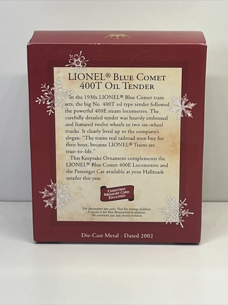 Hallmark Keepsake Ornament Lionel Blue Comet 400T Oil Tender Train 2002