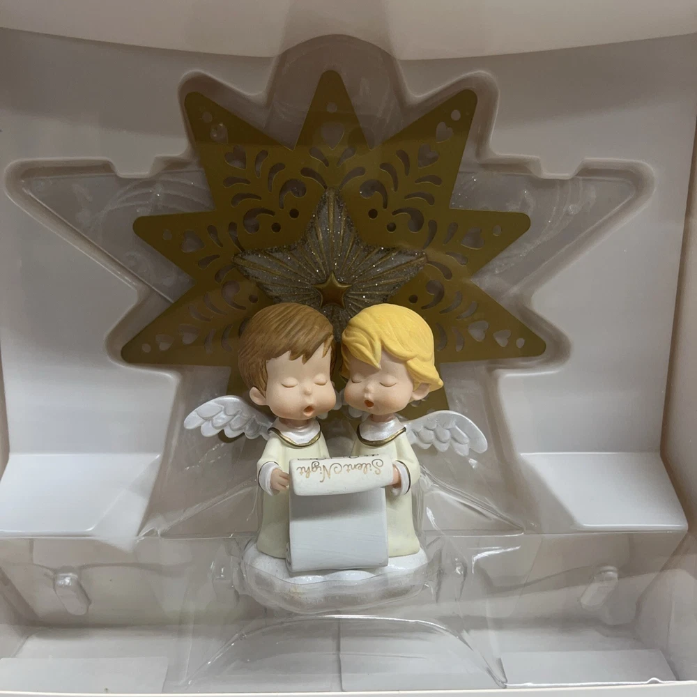 gtin13: 015012958416 Subject: Angel Tree Franchise: Hallmark Keepsake, Mary Hamilton Designs Item Height: 10 in Item Width: 9"-10" UPC: 015012958416 Item Weight: 15 oz Brand: Hallmark Set Includes: Mary's Angels Tree Topper Number of Items: 1 Time Period Manufactured: 2000-2009 Measurements: See Photos in Listing of Actual Item with Ruler for Measurements Material: Resin, Metal, Clear Acrylic Shape: Star Shape with 2 Mary's Angels and Silent Night Sheet Music Item Length: 10 inch Artist/ Sculpted by: Robert Chad and Edythe H.Kegrize Collection: Mary's Angels Features: Artist Designed, Attached Items, Retro Design, Special Limited Quantity Commemorative Edition, Features two Mary's Angels Caroling, Like in Series, this design displays Signature "Mary", Robert Chad and Edythe Kegrize, Hallmark Artists, Brand New, Original Packaging, Resin, Metal, Original packaging, Never Opened nor Displayed Pattern: Solid Recipient: Angel Lovers, Christmas Decor, Mary's Angels Lovers Type: Mary's Angels Tree Topper Ltd Designed by Mary Hamilton Original/Licensed Reproduction: Licensed Reproduction Color: Clear, Gold, Natural Age Level: Over 18 Years Year Manufactured: 2006 Country/Region of Manufacture: China MPN: QXE3303 Theme: Angels, Christmas, Silent Night, Christmas Star Tree Topper Occasion: Christmas Size: Medium Character: Features Mary's Angels, by Artist Mary Hamilton