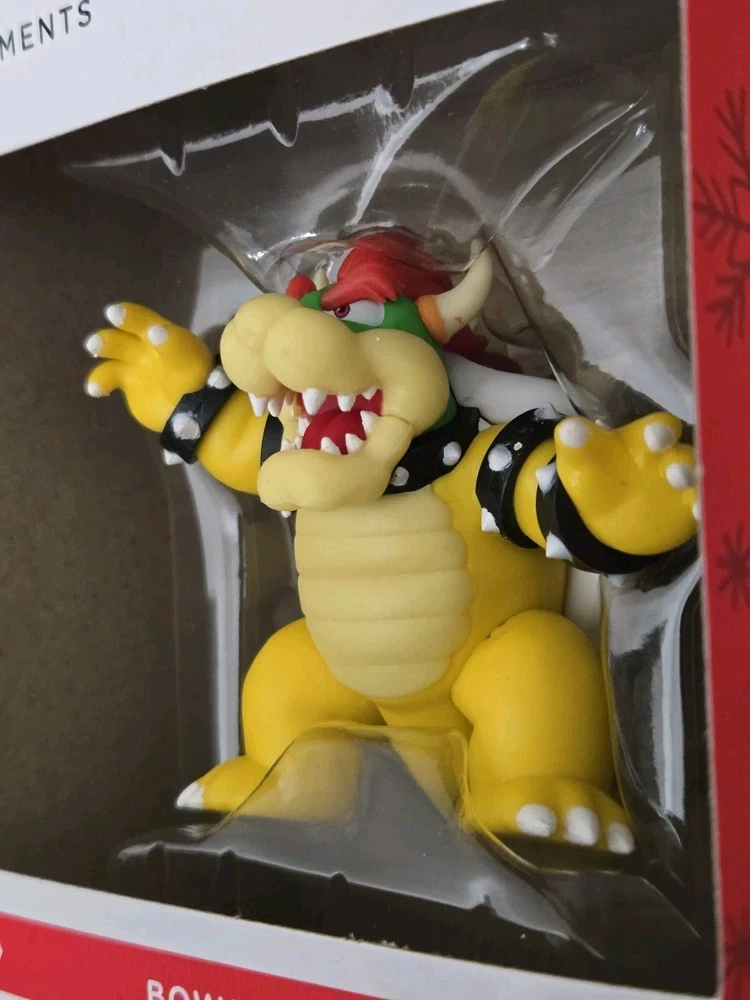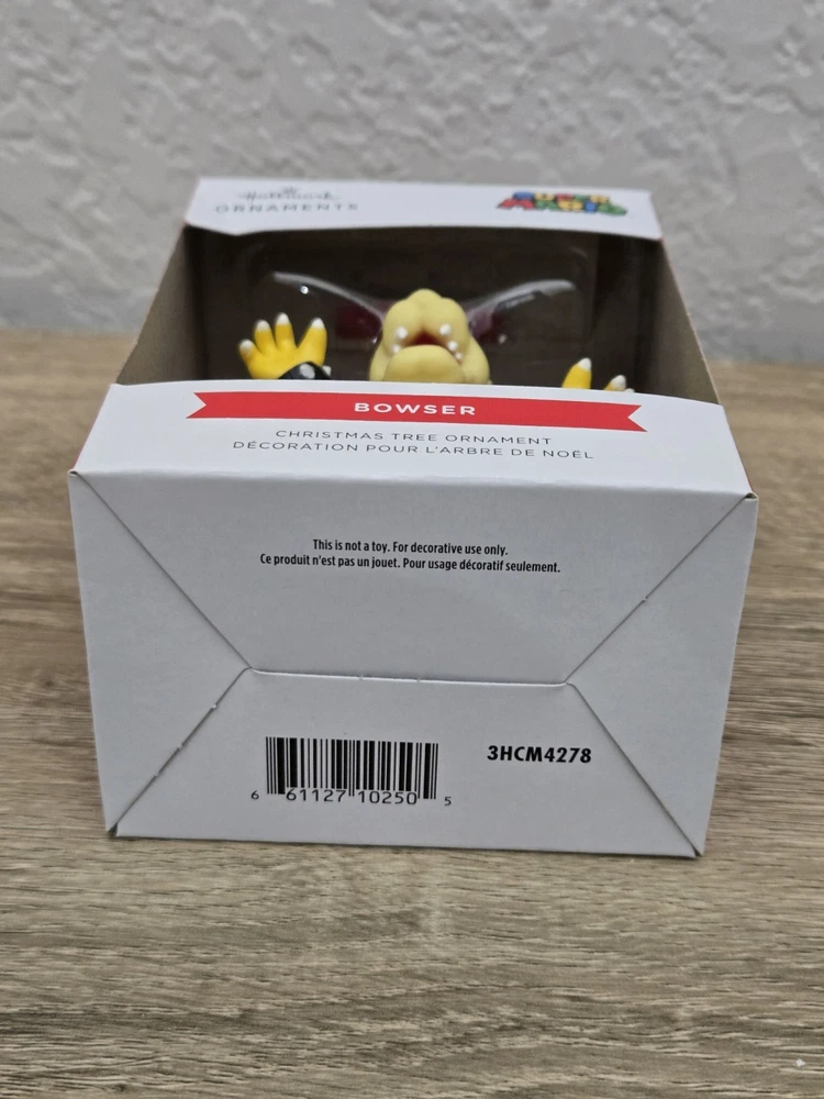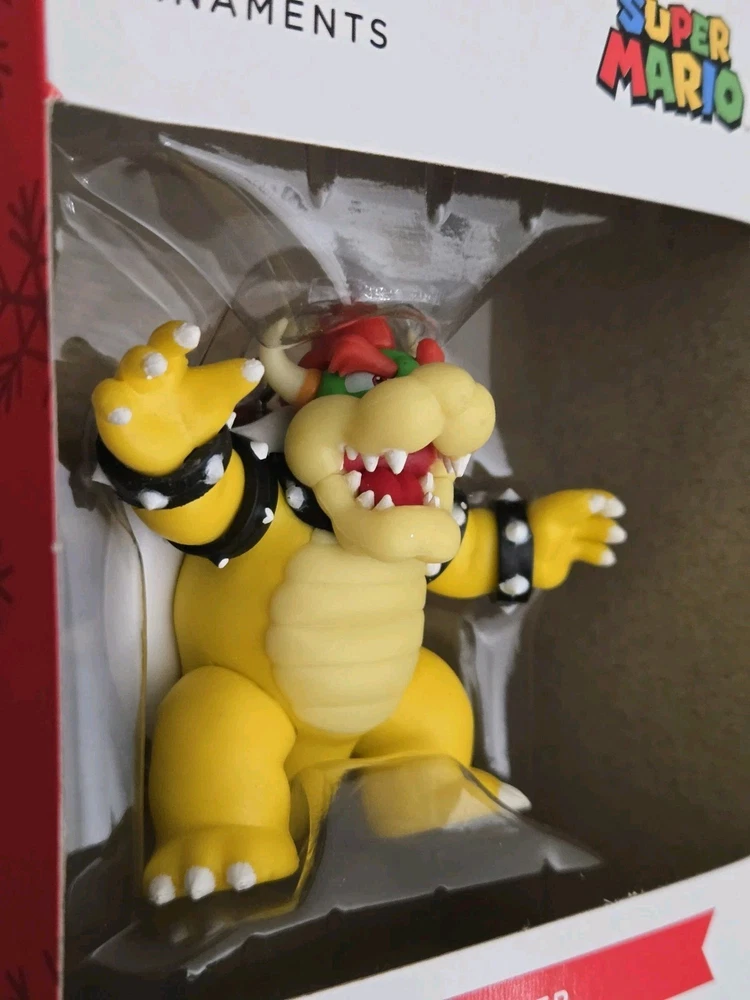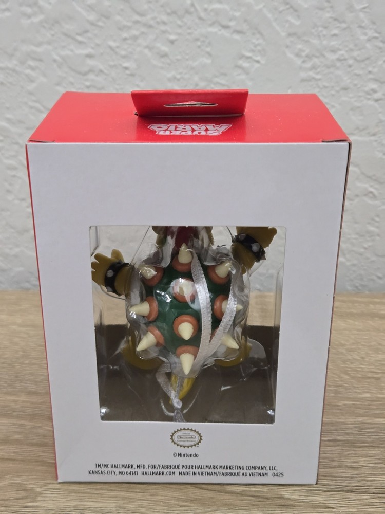 *We offer combined shipping with USPS Ground Advantage. Packaged with care (bubble wrap and cardboard shipping box). Smoke-free home.* The Hallmark Ornaments Super Mario BOWSER Christmas Tree Ornament is a small, multicolor ornament featuring the iconic character Bowser from the Super Mario Bros franchise. This officially licensed Nintendo product is designed by Hallmark and comes in a boxed set. The hanging ornament stands a little over 2 inches tall, making it a perfect addition to any video game-themed Christmas tree. Perfect for collectors or fans of the Super Mario series, this ornament captures the essence of the beloved video game character in a festive holiday decor piece.