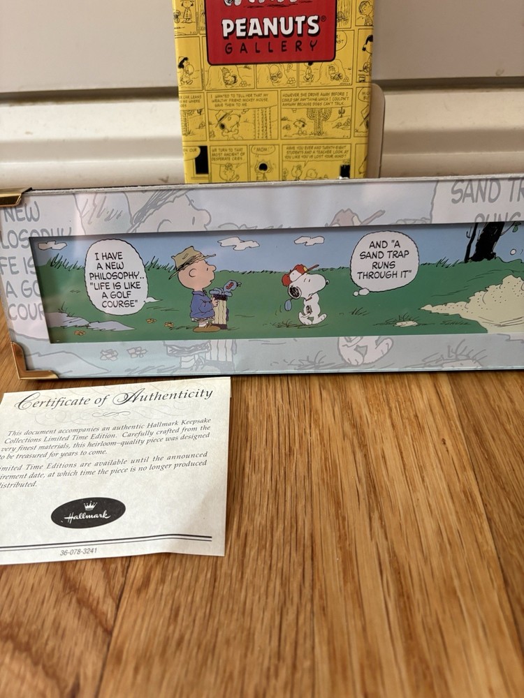 The Hallmark Peanuts Collection 'GOLF IS LIFE!' Comic Strip Limited Time Edition is a special edition merchandise featuring beloved Peanuts characters Snoopy and Charlie Brown. This multicolor comic strip showcases the classic Peanuts franchise in English language, making it a must-have collectible for fans of the series. With its limited edition status, this product is a unique addition to any animation art and merchandise collection.