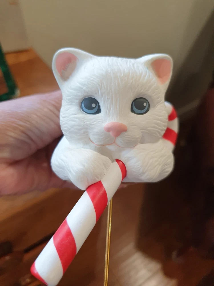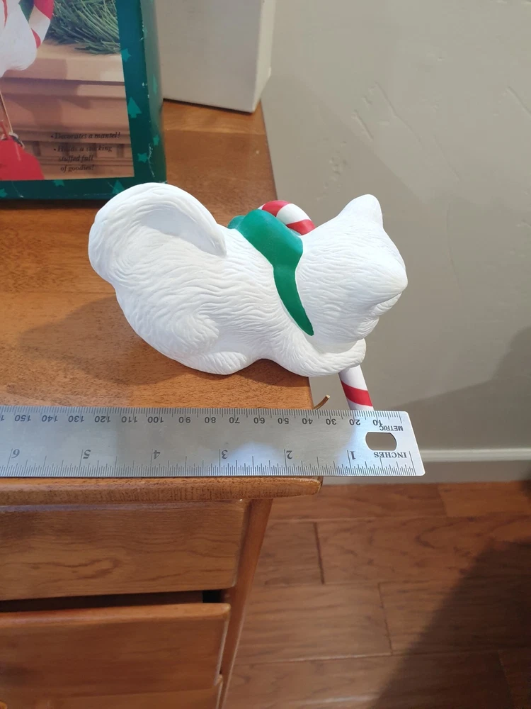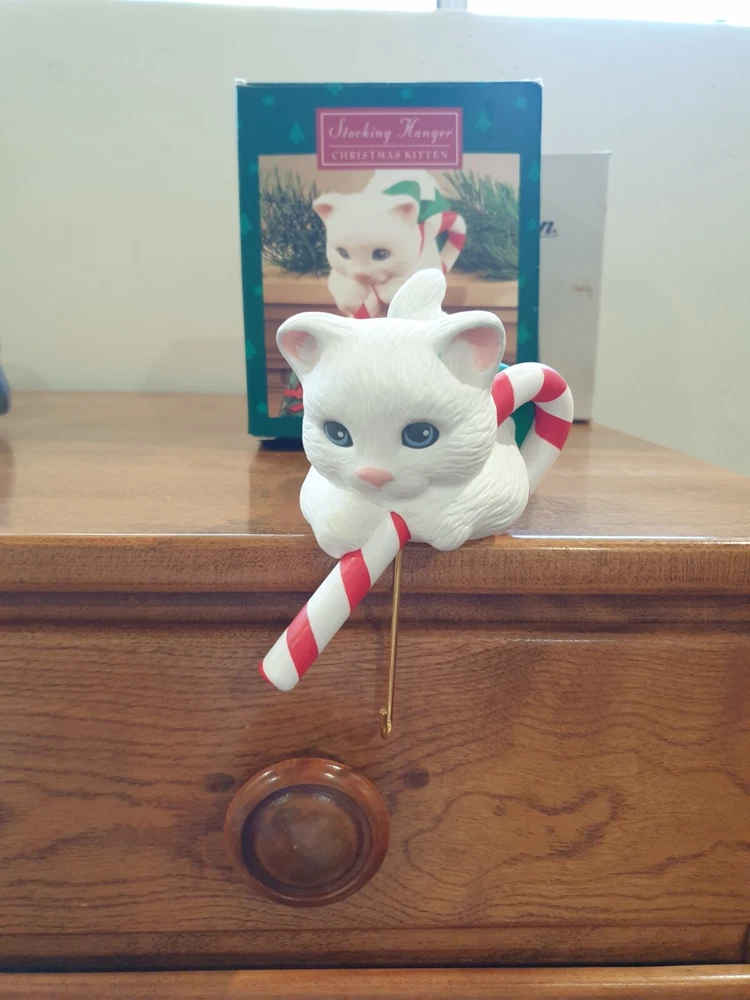 Stocking Hanger Christmas Kitten it is in good condition even has been used no wear on the cat just the old box Please see the photos for condition and measurements