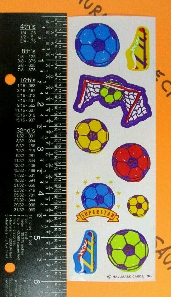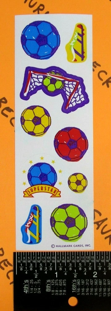 Sticker Strip Sheet Is New. Sticker Theme Is Soccer. Sticker Brand Is Hallmark. When Purchasing Multiple Sticker Sheets Or Packs Please Add All Items To Cart Before Purchase So That Your Purchase Combines Down To Base Shipping Price. All items are shipped WITHOUT tracking in an envelope with cardstock.