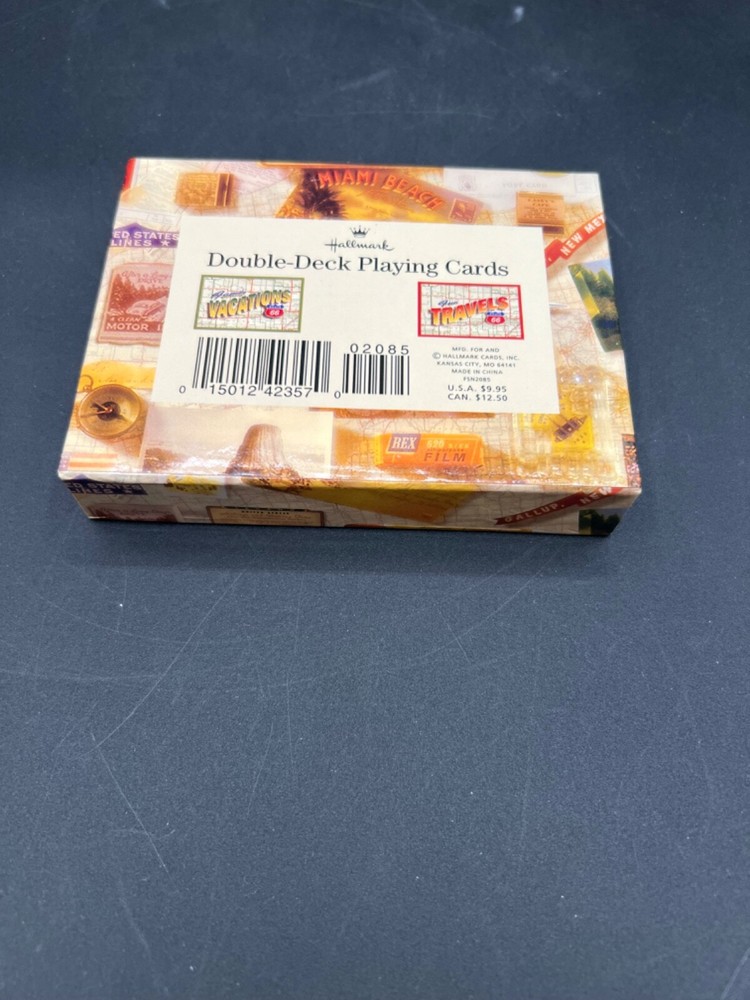 The Hallmark Travels Vacation Route 66 Double Deck Playing Cards are a beautifully designed set featuring a travel theme inspired by the iconic Route 66. Made in China, these modern playing cards are perfect for collectors and enthusiasts of unique card games. The double deck set includes all the cards needed to enjoy a fun game night with friends and family, making it a great addition to any card game collection.