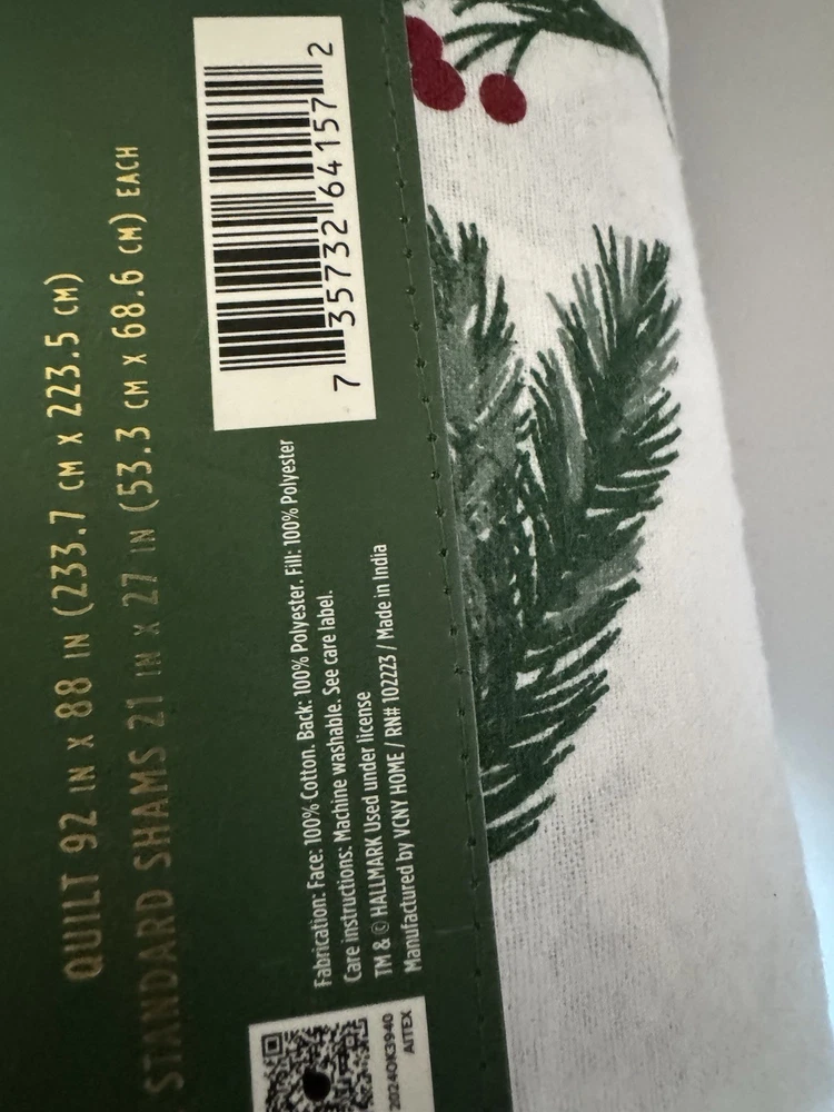 The Hallmark Winter Berries Queen 3-Piece Quilt Set is a charming addition to any bedroom, featuring a floral holiday theme in white, green, and red colors. Made from 100% cotton with a 100% polyester fill, this rectangular quilt set is machine washable for easy care. The quilt set includes a quilt and two pillow shams, all with a quilted finish and measuring 92 inches in length and 88 inches in width. Perfect for adults, this set brings a touch of nature and holiday cheer to any bedroom during the festive season.
