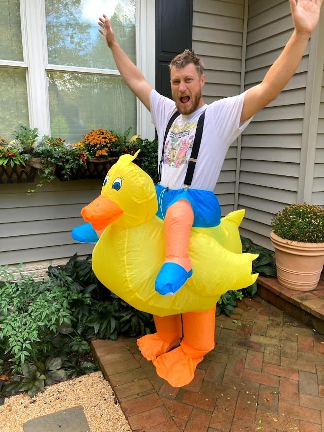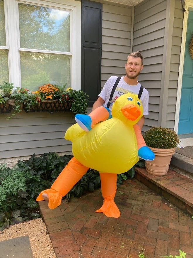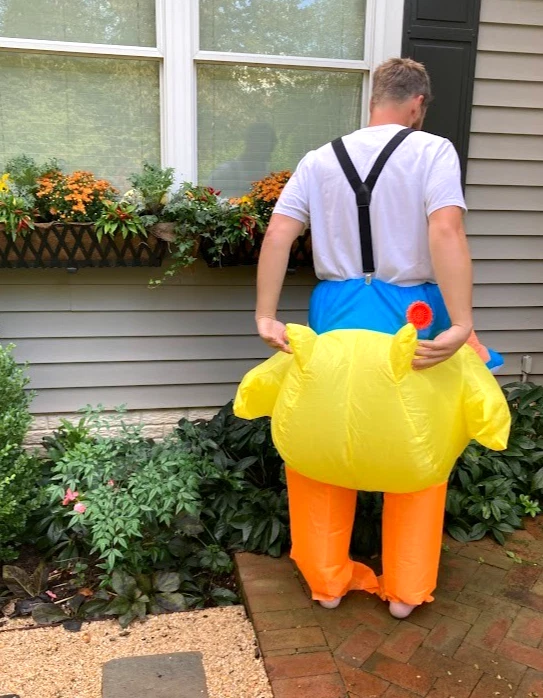 The duck costume is Brand New! We took it out of the package to take photos. The model is a man size large 5"11 & 195 lbs. The waist size of the duck is very large. So.. I added a pair of suspenders to help hold it up. The Suspenders added a great touch! The Adult Men Inflatable Duck Costume is a fun and quirky option for Halloween or themed parties. This large-sized costume features a cartoon duck pattern in yellow, with Black suspenders included . Made of polyester, this inflatable costume is easy to wear and care for, suitable for adult men and women alike. The costume comes with a battery box (batteries are not included) **You also have the option to use your own battery pack with the ducks USB power cord. There is a small pocket on the inside of the duck to hold the battery pack. The fan is attached to the rear of the duck for inflation. Perfect for those looking to dress up as a farm animal with a touch of humor. We add to our store regularly, Please "follow" us to check out all of the cool treasures we find during our shopping excursions. Thank you so much! https://www.ebay.com/str/pennywhistles