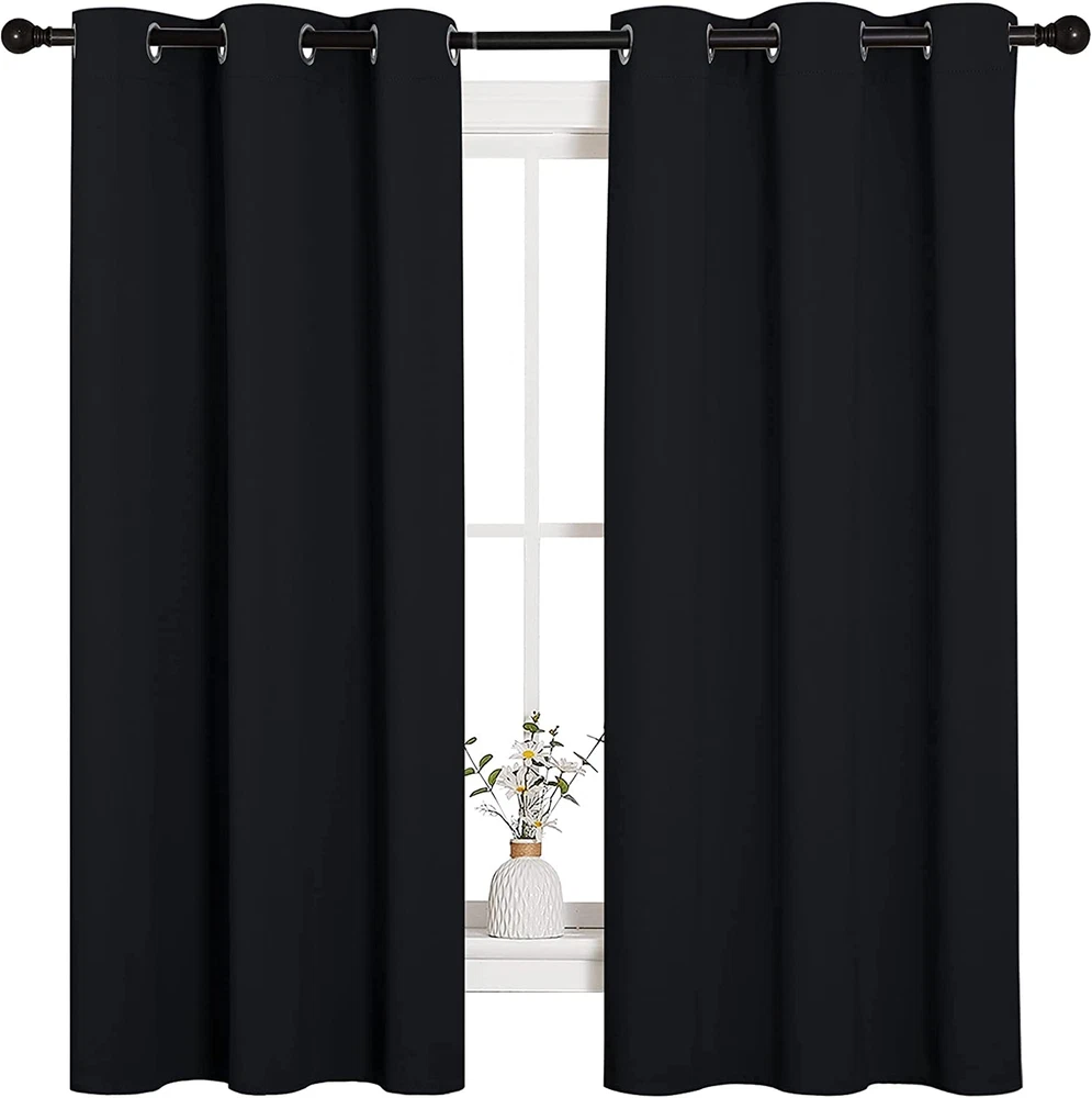 Polyester READY MADE: Package only includes 2 blackout curtain panels, each 42" wide x 63" long when fully spread, with 6 grommets. Due to handmade craftsmanship, size may vary by 1". No curtain rod included. The fabric is soft and heavy without a liner. SERVE WELL: Curtains impede 85%-99% light and UV rays(Dark color curtains work well). Noise-reducing, better TV viewing thanks to the innovative triple weave technology. ENERGY SMART: Triple weave blackout fabric balances room temperature by insulating against summer heat and winter chill. Protect your furniture, floors, and artwork from the ravages of the sun, the drapes will pay for themselves off over time. GOOD TO GO: Thread trimmed and wrinkle-free, ring (1.6-inch inner diameter) fits easily with standard curtain rods. All sets for you to put them up right away. EASY TO MAINTAIN: NICETOWN blackout curtains are made to last. Machine washable in cold water, tumble dry. Quick ironing or steam clean when needed. Visiting the NICETOWN store, find out your favorite curtains. Product Description HEAVY-DUTY SILVER RING Suitable for most curtain rods, and easily for hanging and sliding. HIGH DENSITY SUTURE The curtain fabric looks more exquisite and worthwhile. SAME FABRIC FRONT AND BACK The same fabric for both sides makes the curtain a simple style. TRIPLE WEAVE TECHNOLOGY Provide you with a perfect shading performance of about 50%-99% Blackout. DO WELL IN THERMAL INSULATED After insulating with the curtain, the temperature drops a lot. 1 SILVER GROMMET 2 HIGH DENSITY SUTURE 3 FRONT AND BACK 4 TRIPLE WEAVE FABRIC 5 THERMAL INSULATED TYPES OF CURTAIN TOP FOR NICETOWN BLACKOUT CURTAIN GROMMET TOP Make curtain orderly, easy to install and slide, so that let the room elegant. Recommended with no greater than a 1.6-inch rod for maximum movement. ROD POCKET Make some small pleats that give a feeling of cozy and classic. Recommended with no greater than a 1.7-inch rod for maximum movement. BACK TAB Give 3 options to hang curtains which is a perfect choice for window decoration. Recommended with no greater than a 1.7-inch rod for maximum movement. TOP TAB Creates casual elegance for your house, which makes the curtains easy to install and slide. Recommended with no greater than a 1.9-inch rod for maximum movement. TWIST TAB Not only creates rich, deep folds for a professional look, but also makes this panel easy to hang, open and close. Recommended with no greater than a 1.9-inch rod for maximum movement. PINCH PLEATED More gathered than other headings and have permanent sewn-in pleats for a more luxurious. Recommended with no greater than a 1.9-inch rod for maximum movement. CLASSIC AND POPULAR COLOR RECOMMENDATIONS COLOR SHADING DISPLAY THE COLOR OF THE ACTUAL ITEM MAY VARY SLIGHTLY IN DIFFERENT ENVIRONMENT The video showcases the product in use. The video guides you through product setup. The video compares multiple products. The video shows the product being unpacked. The video showcases the product in use. The video guides you through product setup. The video compares multiple products. The video shows the product being unpacked. 100% Blackout Curtains These curtains are manufactured in a STANDARD 100 certified by the OEKO TEX factory, which can block out 100% bright sunlight and UV ray, bring you a full room darkening environment for good sleep. 100% Blackout Door Curtain These 100% blackout door curtain not only protect furniture and floor exposed to the sun, but also balance room temperature. They insulate from the summer heat. 100% Blackout Door Blind Easy to install in minutes with No Tools-No drill, screws, or brackets. Great for Renter, Landlord, and Home Buyer. Use as a Cordless Blinds for Windows:no tangled cords, safer for child and pets. 100% Blackout Chenille Curtains Chenille blackout curtains crafted with black liner backing make the drapes completely keep out the 100% sunlight and UV ray. The greatest benefit is to offer you a real dark environment