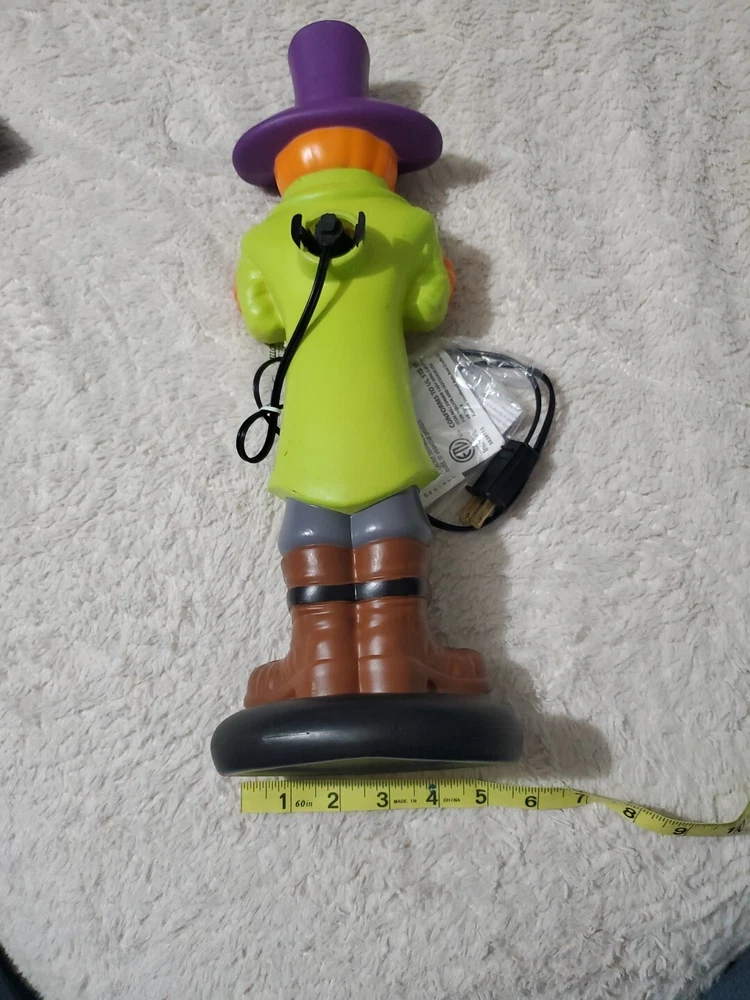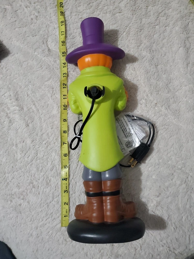 Halloween Blowmold Dapper Scarecrow Pumpkin man with purple top hat blow mold