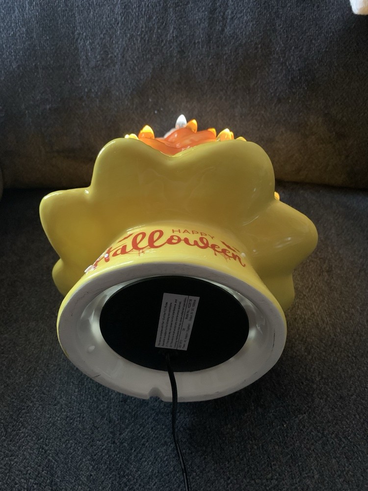 This Halloween Candy Corn Tree is a 12" ceramic decoration that lights up, perfect for adding a festive touch to your holiday decor. The vintage retro style, featuring multicolor candy corn lights, makes it a charming addition to any room during the Halloween season. With its free-standing design and easy care instructions of cleaning with a damp cloth, this Mr. Christmas product is a whimsical and stylish choice for your Halloween celebrations.