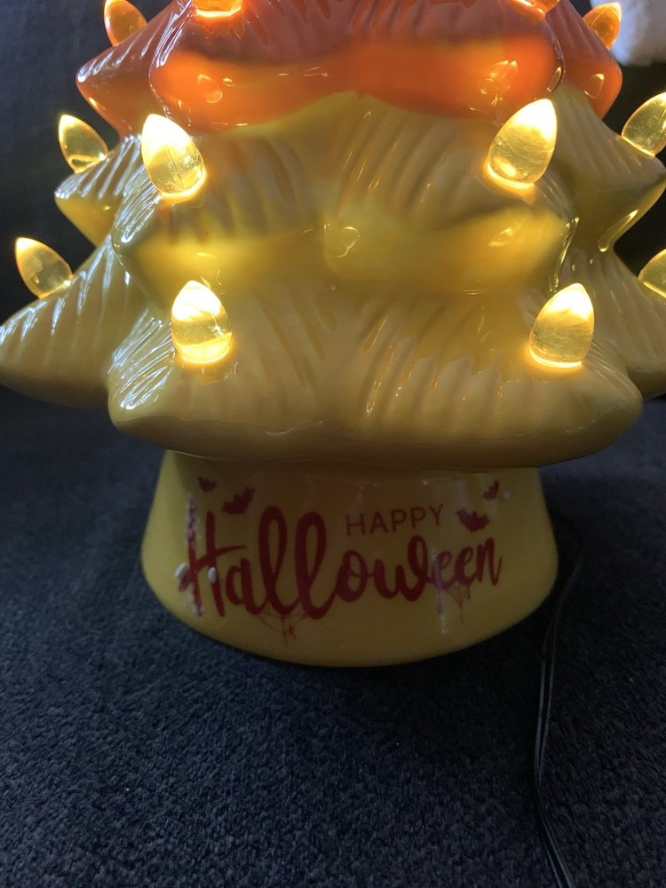 Additional Parts Required: No Color: Multicolor Type: Christmas Tree Department: Adults Personalize: No Customized: No Material: Ceramic Size: Medium Theme: Seasonal Occasion: Halloween Mounting: Free Standing Item Width: 8 in Item Height: 12 in Care Instructions: Clean with Damp Cloth Brand: Mr. Christmas Room: Any Room Battery Type: AA Style: Vintage/Retro Country of Origin: China