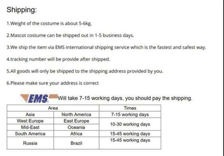 Tariff Delivery details Feedback Return /Refund Contact us Tariff Paying tax is the duty of every citizen, buyer need to responsible for the all of taxes. Due to the tax problem, buyer refuse to receive the goods, buyer need to Responsible for freight out and home. Delivery details 1. Delivery time: We send by China Post Air Mail in Default. (20-60 days for different cournties, Brazil sometimes needs 90days). We send by Epacket to USA about 7-15 days. 2. For fast delivery, please choose EMS (7-10 days), for Russia and Brazil, it needs 10-15 work days. 3. We guarantee to ship out within 15days after payment confirmation (except Holiday). 4. Our shipping rates include the cost of shipping, handling, packaging and related manpower costs. 5. Please contact us If you don't receive over above business days,we will solve this problem in a very short time. 6. Please make sure the shipping address is correct. We are not responsible for any wrong or undeliverable addresses. Feedback 1.We depend on our aliexpress reputation and customer satisfaction to succeed. Therefore, Your feedback and DSRS are extremely important to us as better DSR scores affect our search; placement on aliexpress. 2.If you love my items please leave me good feedback and 5 star DSR rating. Your action will help us offer our milk and bread . I will do the same for you .If we have not given you reason enough for 5-star grades on each DSR then please let us know how we can earn your 5-star rating before submitting your stores! Return /Refund 1. We will check the goods quality before shipment. If there are some unexpected problems happen, we hope to solve the problems with buyer through friendly in the following ways: (1) If it is quality problem, buyer can contact us after receiving the goods, buyer can help to provide photos or video and other evidence to help us to solve the problems. (2) Man-made damaged, buyers take full responsibility. (3) If the cusomers do not satisfy with the products, the buyer return the goods in original conditon to us; after we receive the goods ,we will send a new product to buyer or refund the money. But shipping fee is not refundable. And the item should be returned to us in its original condition by mail with tracking number. 4. Any question you would like to ask ,welcome to email us Contact us All emails will be answered within 24 hours. If you do not receive our reply, please kindly re-sent your email and we will reply you as soon as possible. If you email us and don't hear a reply, please email again through the aliexpress system as sometimes our mail servers have errors Because of the new rule of Russia post office, When make an order, Russia customers have to write the Full name(a surname, a name and a middle name), or the packages would be sent back . No full name, we will refuse to send goods out! thanks! Thank you for your coming to our shop!!!