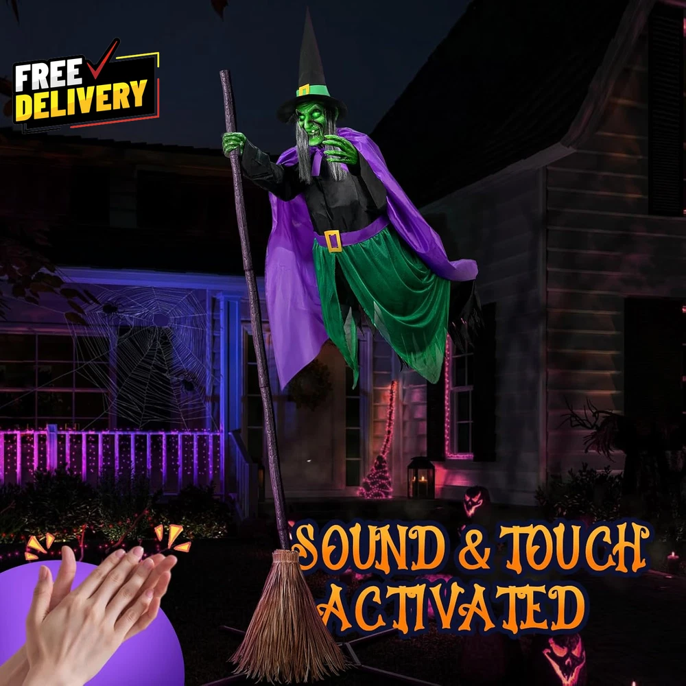 Halloween Decorations Outdoor 12 Ft Animated Hovering Witch Animatronics Prop...