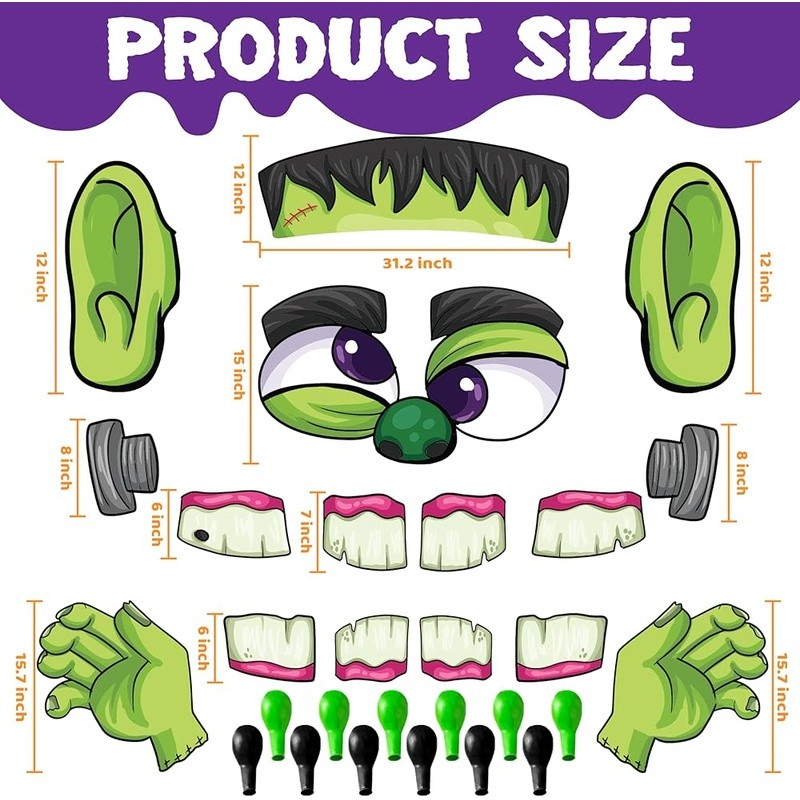 You may also like Halloween Vintage Cat Tabletop Decor Resin Figure Top Hat Bow Tie 10 Inch New 17.34 USD 18.85 USD Free shipping 8% off Clear Latching Storage Bin Organizer Clothing Boots Crafts Home Office New 11.65 USD Free shipping Wheeled Stacking Bins Storage Organizers Multi-Purpose Easy Transport Home Use 12.32 USD 13.39 USD Free shipping 8% off 5 Heads LED Motion Sensor Security Light 5000LM Outdoor Waterproof Floodlight US 59.78 USD 64.98 USD Free shipping 8% off Non-Stick 8 Quart Granite Cooking Pot W/ Lid Oven Safe Induction Ready New 64.99 USD Free shipping Electric Staple Gun 2 in 1 Nailer 2000mAh Lightweight Ergonomic Design New 43.05 USD 46.79 USD Free shipping 8% off Ceramic Baking Dish W/ Acacia Wood Lid Double Handle Oven to Table Casserole New 31.85 USD Free shipping Clear Stackable Storage Bin 72Qt W/ Secure Latch Ideal Home Organization New 9.6 USD Free shipping New Steel Transport Chair Wheel Chair Light Weight Wheelchair up to 300 lbs, Red 157.48 USD 171.17 USD Free shipping 8% off 2-in-1 Electric Nail Gun Stapler 18GA Brad Nailer Heavy Duty Lightweight DIY New 56.2 USD 61.09 USD Free shipping 8% off Electric Percolator Coffee Pot 1.8L 1000W Auto Keep Warm Stainless Steel New 51.99 USD Free shipping Wheeled Storage Bin 45 Gal Latching Tote Stacking Container W/ Handles New 23.95 USD Free shipping About this item SUPER VALUE PACK. The Halloween Frankenstein face trunk or treat decoration includes 1 huge forehead (divided into 2 halves, 15. 6” each), 2 eyes (15”), 2 ears (12”), 2 hands (15. 7”), 2 bolt nostrils (8”), 8 teeth (2 for 7”, 6 for 6”), 12 balloons (6 black, 6 green), 3 sheets of double-sided stickers. UNIQUE DESIGN. The Halloween Frankenstein trunk or treat decoration is a Frankenstein design with a really huge size. The forehead measures 31. 2 inches for the largest. Eyes measure 15 inches for the largest. IDEAL CAR TRUNK DECORATIONS. Perfect Halloween trunk or treat car decorations, Garage Decor, House Front Decor, Patio, Vehicle Decorations, Outdoor Decor, and many more. Great Halloween decor choice for your home and vehicles. Spread the Halloween vibes everywhere you go! SAFE FOR CHILDREN. Non-toxic, non-BPA. Meet US toy standards. Safety test approved. CUSTOMER SATISFACTION. Providing a great shopping experience is our main priority for our customers. Feel free to message us through “contact sellers” if products don't meet your expectations. The celebrations start at ! Color: Frankenstein Brand: Occasion: halloween Manufacturer: Flex Angle Tool, Adjustable Arc Scriber for Precision Marking in Wood Metalwork 7.22 USD Free shipping 3 Style Stainless Steel Multi-functional Egg Slicer Heavy Duty Hard Boiled Eggs 5.19 USD Free shipping Kitchen Bone Scissors - Heavy Duty Stainless Steel Poultry Shears for Chicken 11.71 USD Free shipping One-Hand Operation Bag Holder - Adjustable Stand for Food Prep, Storage Bags 4.11 USD Free shipping Masking Tape Applicator for Wall & Floor, Painters Tool with Dispenser Guide 9.67 USD Free shipping Meat Tenderizer Hammer, Stainless Steel Mallet Tool for Steak Beef Chicken 6.03 USD Free shipping 20x Aluminum Mini Heavy Duty Carabiner Key Chain Snap Hook Clip Outdoor Camping 7.33 USD Free shipping Knife Sharpening System - 4-Stage Professional Sharpener with Diamond & Ceramic 4.83 USD Free shipping Butter Spreader & Stick Holder Evenly Spreads Butter on Pancakes,Toast and Bread 5.77 USD Free shipping One-Click Butter Slicer with Stainless Steel Blade for Cheese, Bread Decoration 9.29 USD Free shipping Anti-Slip Weight Lifting Grips for Bodybuilding, Gym Workout Hand Protectors 7.12 USD Free shipping Wave Taco Holder Stand - BPA-Free Plastic Rack & Tray for Mexican Cooking 4.44 USD 4.83 USD Free shipping 8% off
