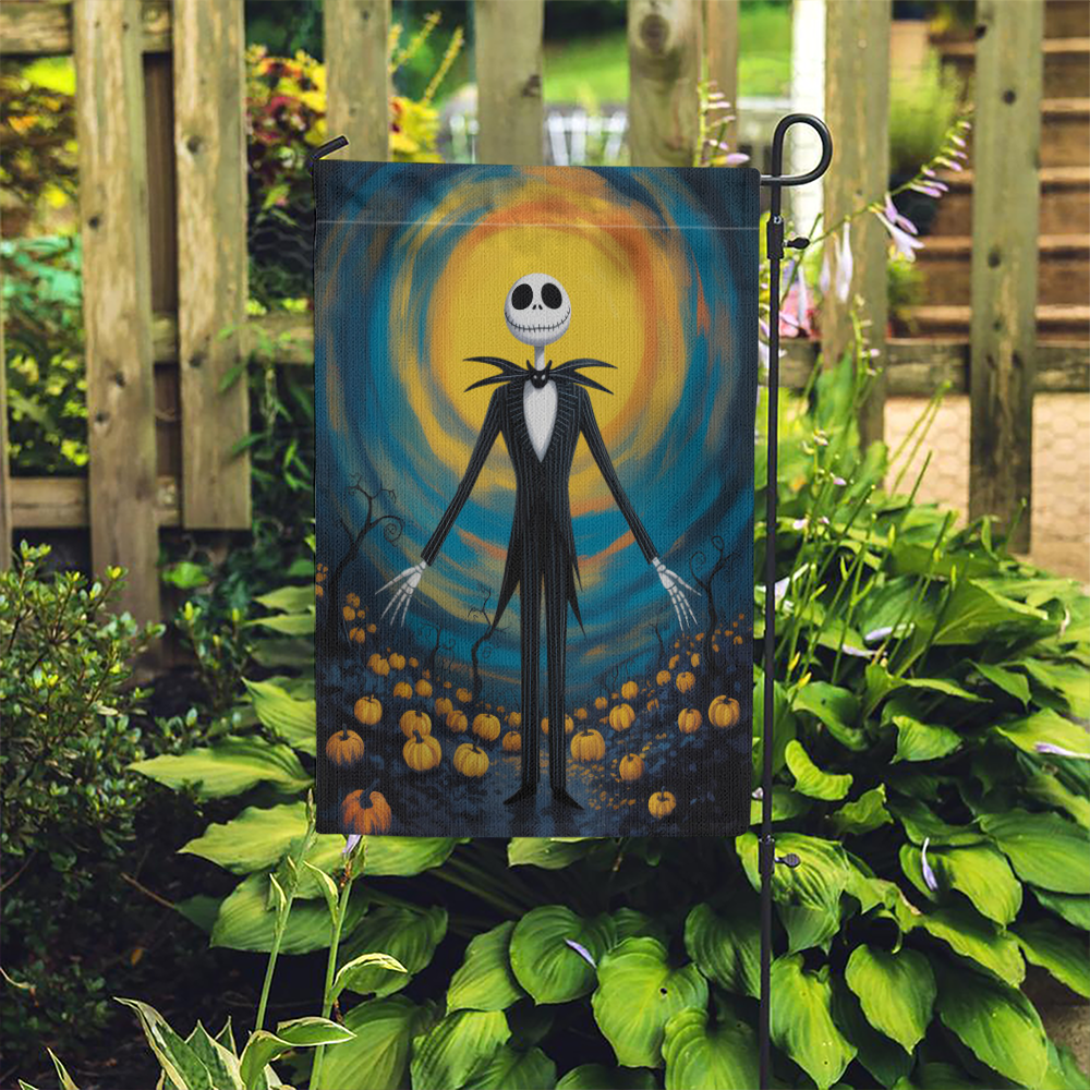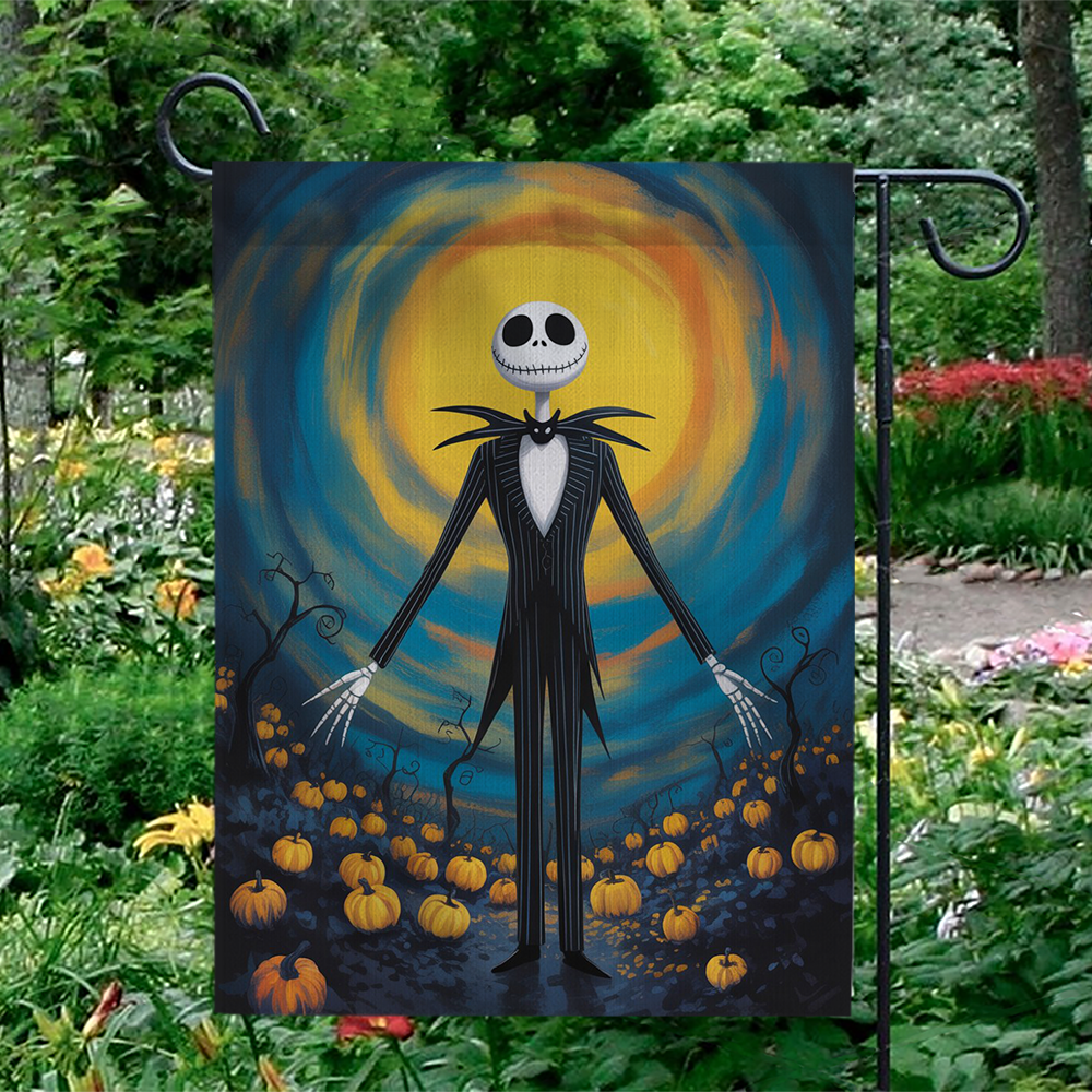 Give your outdoor décor a spooky seasonal upgrade with this Halloween garden flag! The design features a skeleton figure standing in a glowing pumpkin field, under a swirling night sky with a large full moon , creating the perfect eerie yet festive display for the season. Available Sizes: 12 x 18 in (small garden flag) 28 x 40 in (standard house flag) 36 x 60 in (large banner) Features: Made of durable, weather-resistant fabric Double-sided print with vivid, fade-resistant colors Fits most standard garden flag stands and poles Perfect for gardens, patios, porches, and Halloween parties A spooky seasonal gift idea for friends and family Light up your yard with eerie charm using this skeleton and pumpkin Halloween garden flag!