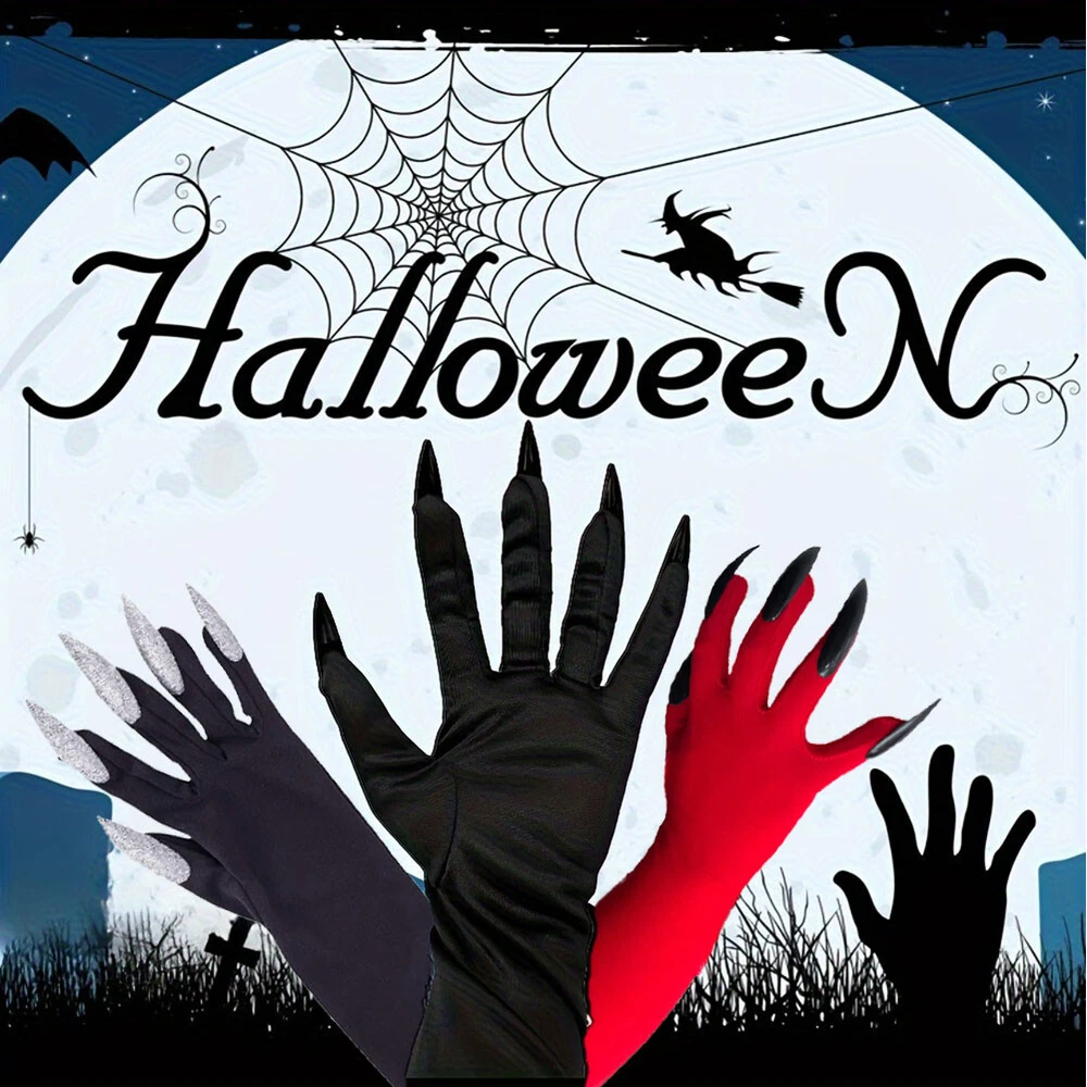 Description: -100% brand new and high quality. -Long Halloween ghost gloves with long fingernails. -Durable, wear-resistant, nontoxic and environmentally friendly for us to use. -Perfect funny and horror gloves, one size fits most adult hand. -You can use it in any occasion if you want, irrespective of age and gender. -Designed with the scary claw and ghost long finger pattern, it can add some ghost and scary atmosphere. -Great for masquerade parties, costume parties, carnival, Christmas, Easter, Halloween or any other parties. Package include : 1 Pair Halloween Arm Sleeves