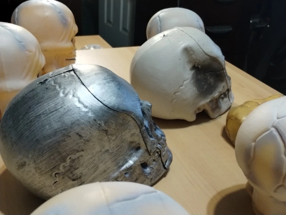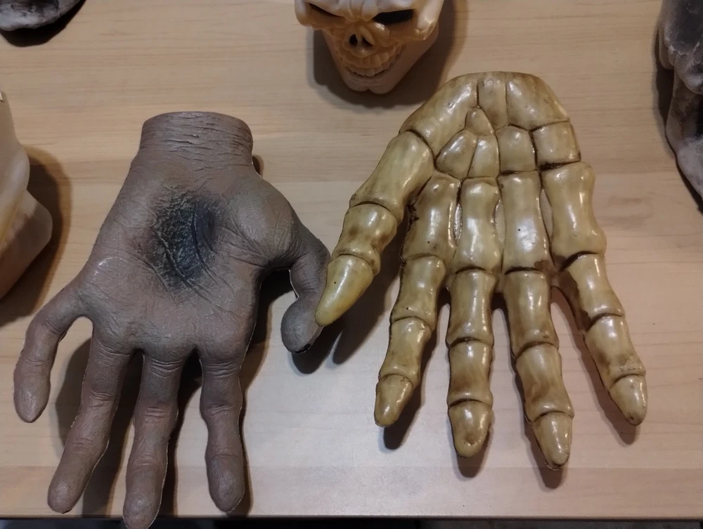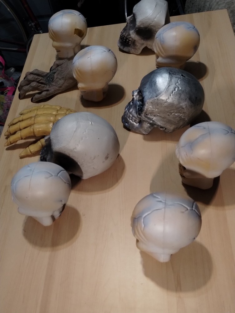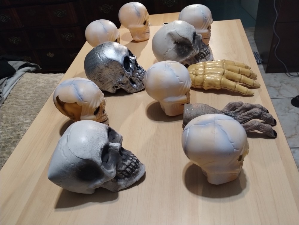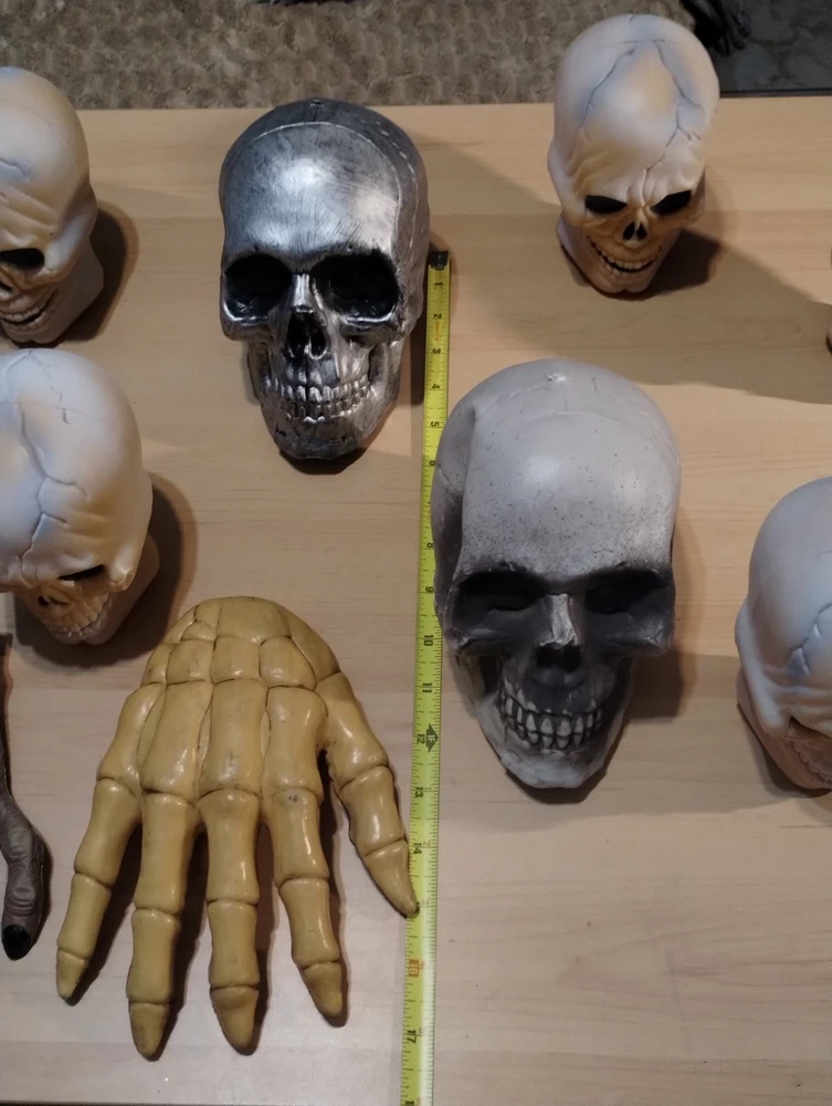 This Halloween lot includes figurines of skulls with right and left hands, designed to add a spooky touch to your seasonal décor. Made of plastic in a modern style, these medium-sized figurines are perfect for teens, adults, and kids alike to display in any room during the Halloween season. The beige color adds a realistic touch to these lifelike representations, making them a unique and eye-catching addition to your holiday and seasonal decorations.