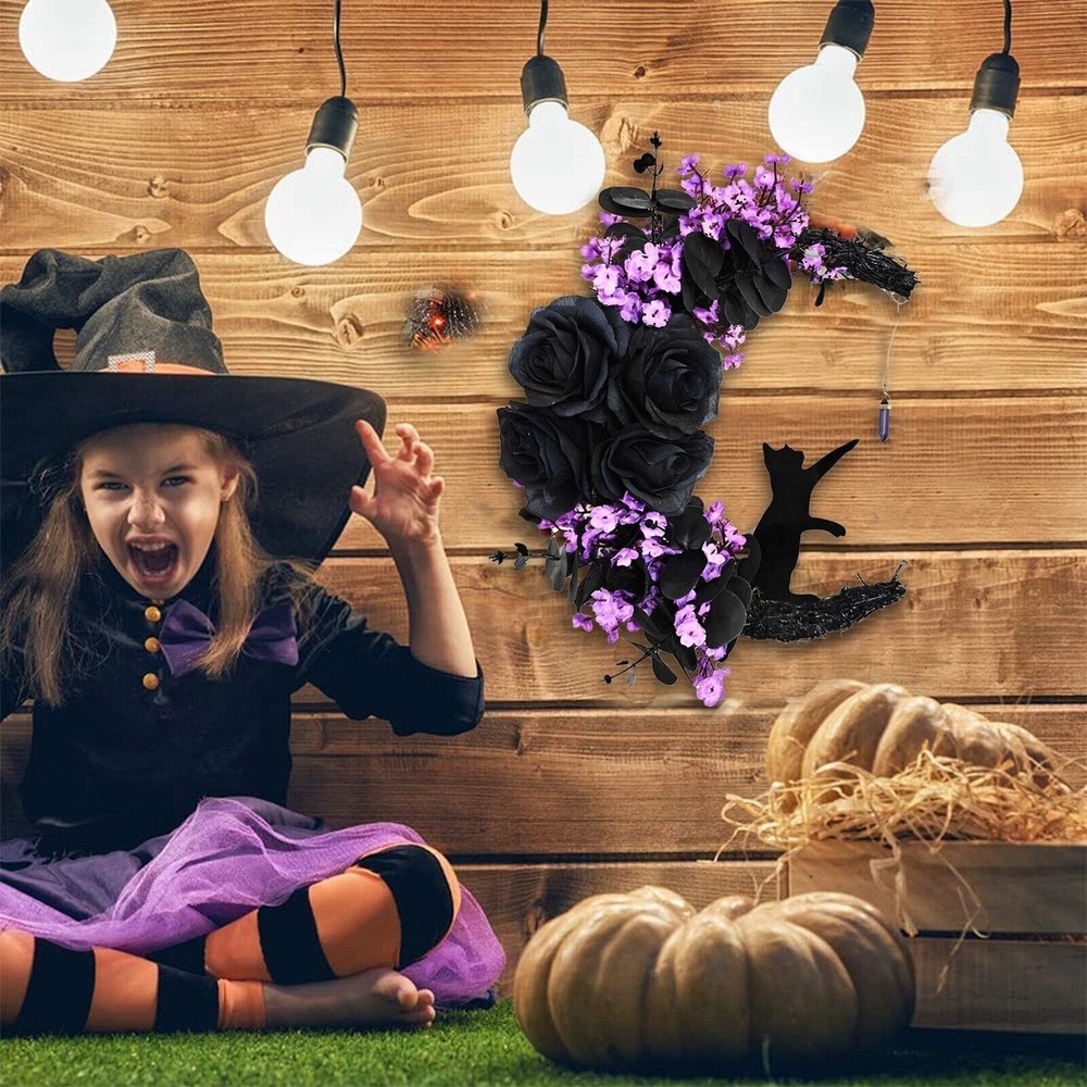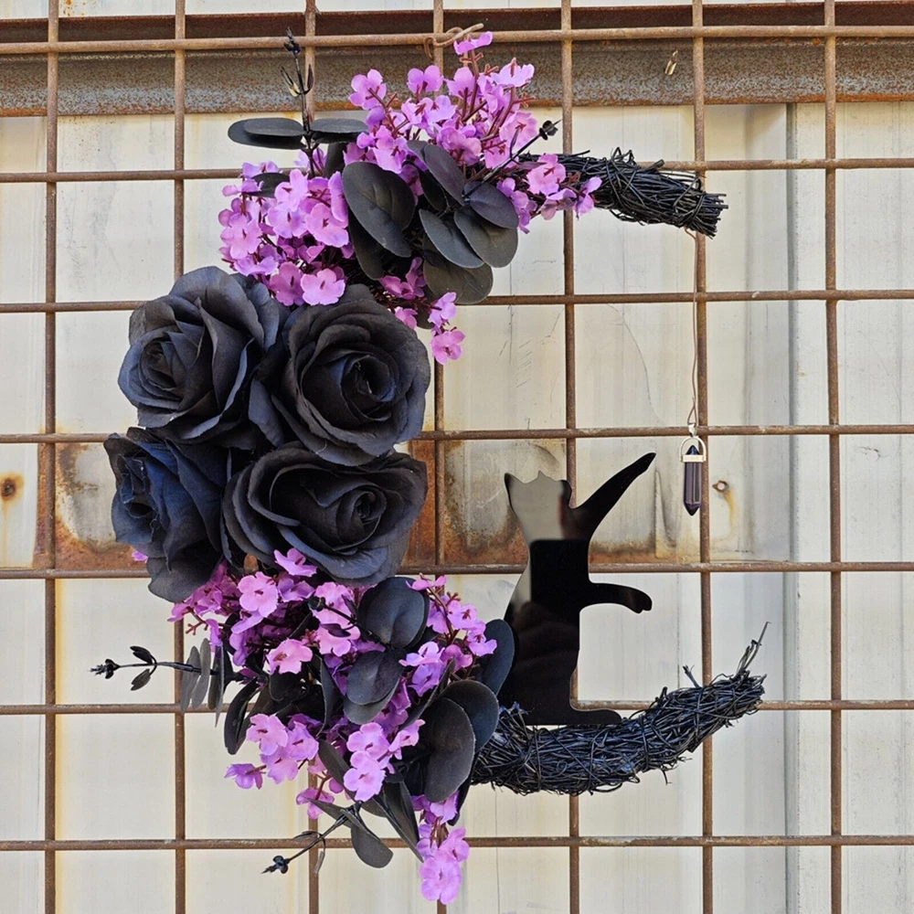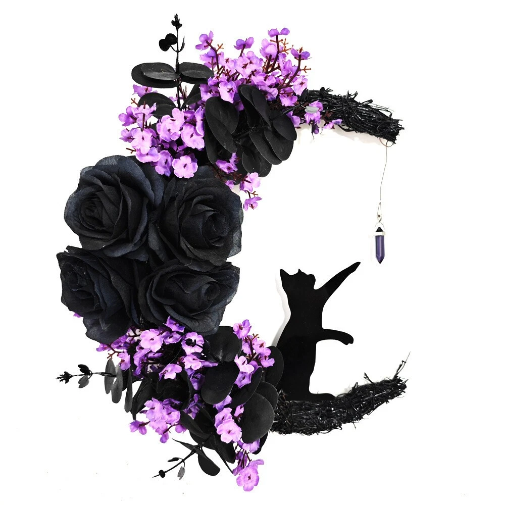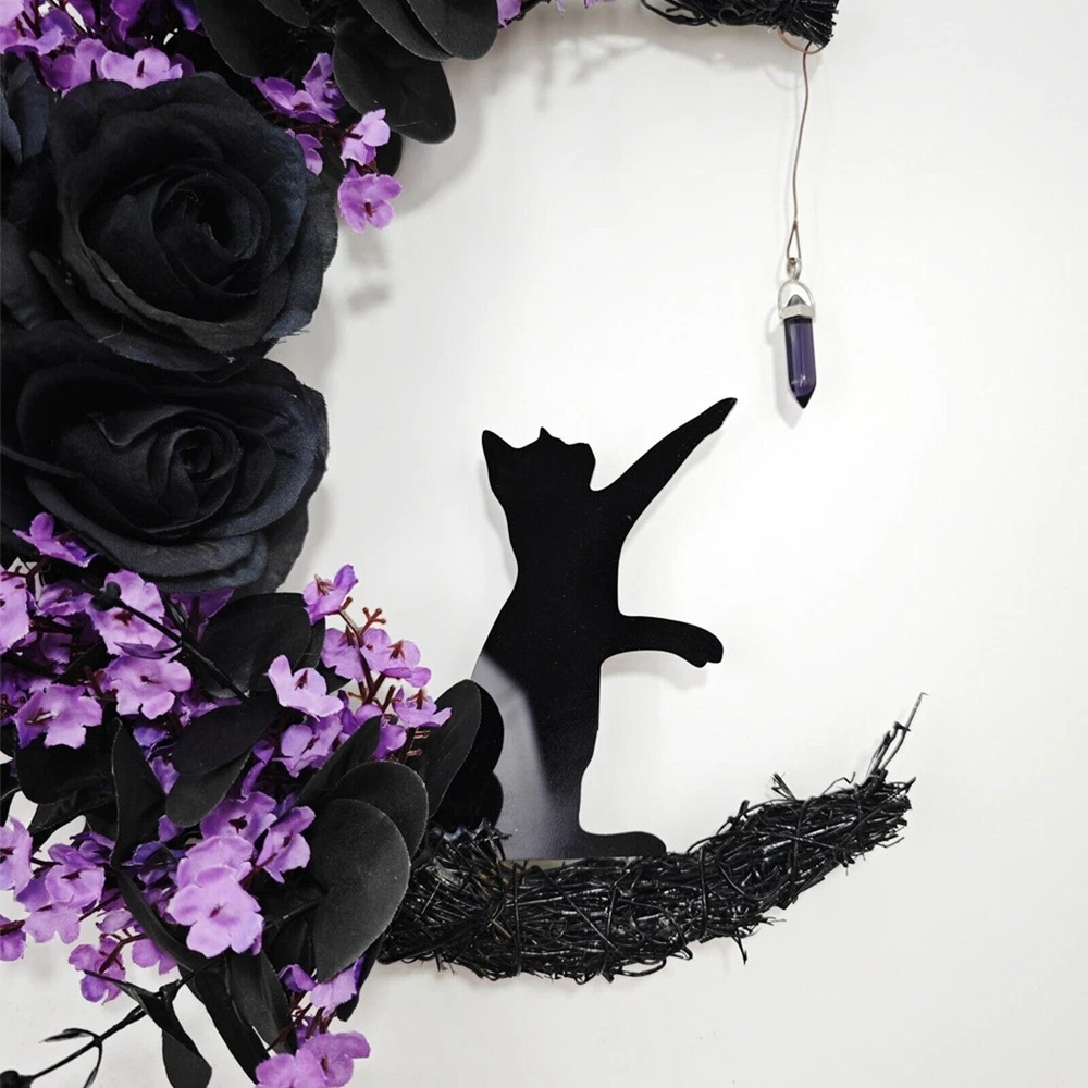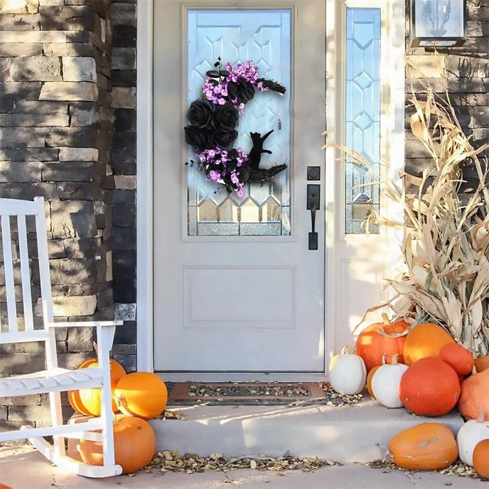 Halloween Moon Wreath With Cat Wall Decor Moon Halloween Wreaths For Front Door