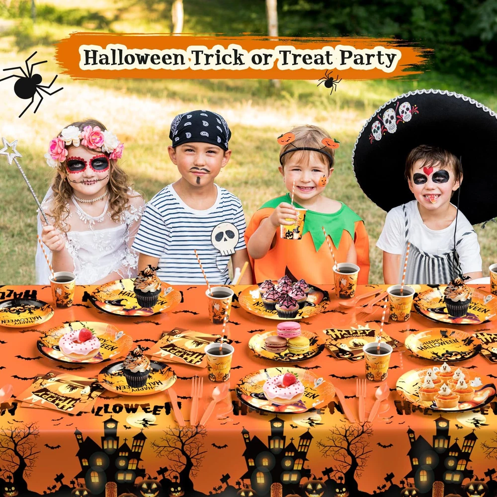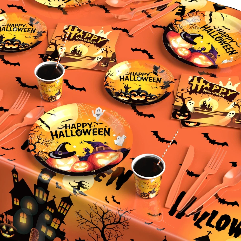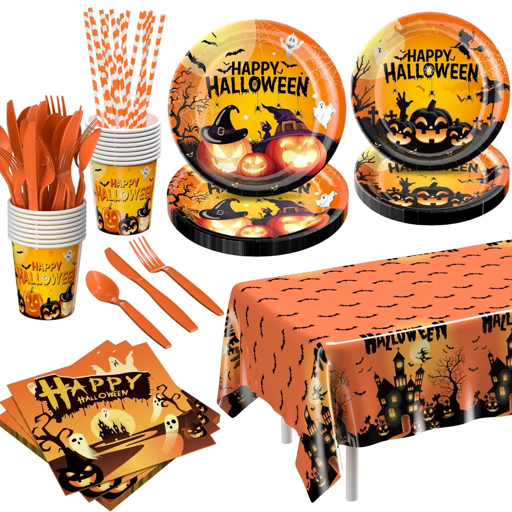 Halloween Party Supplies: Halloween Party Decorations 129 PCS - Disposable Paper Plates Tableware Napkins Cups for Kids Boy Girl Halloween Pumpkin Themed Party Decorations Serve 16 Halloween Party Supplies: Fun Pumpkin Disposable Tableware Set, classic orange pumpkin tableware set inspired by classic Halloween elements such as cute pumpkins witches and graveyards, add mysterious and festive atmosphere to your dinner table and create unforgettable Halloween memories that will be loved by your family and friends alike. Package Includes:129 PCS Halloween Party Supplies includes 16pcs 9" Halloween dinner plates, 16pcs 7" Halloween dessert plates, 16pcs 9oz cups,16pcs napkins, 16 sets of utensils (forks, spoons, knives, straws), and 1 Halloween tablecloth (54"x104"). This Halloween party supplies set makes it easy to host a fantastic Halloween party for up to 16 guests without any additional preparation. Brighten Kids' Faces: Halloween is one of the most anticipated holidays for children. They can dress up in fun costumes, collect candy and enjoy trick-or-treating. Our pumpkin tableware has a fun design that will ignite kids' enthusiasm for the holiday and make your table the center of the party. Convenient and Time-Saving: Designed for ease, our disposable tableware eliminates the hassle of cleanup, so you can focus on enjoying the festivities. Whether you're sharing Halloween treats or celebrating with kids, family, friends, and neighbors, this set ensures a hassle-free, enjoyable party. Reliable Materials: Halloween tableware is made of thick paper and sturdy plastic, printed with food-grade water-based ink to ensure safe contact with food. Perfect for All Halloween Parties: This vibrant orange pumpkin tableware is ideal for children's Halloween parties and family gatherings of all ages. It’s versatile enough to handle both small family events and large parties with friends and relatives. 100% Perfect Halloween Party Supplies: We rigorously inspect every product to ensure quality standards are met, guaranteeing accurate product quantities. Enjoy your party time with peace of mind and leave behind precious memories. SHIPPING - We offer FREE shipping on all orders! - We ship within 3 business days of payment, usually sooner - We use a selection of shipping services such as UPS, FedEx, USPS etc - We only ship to the lower 48 states, no APO/FPO addresses or PO Boxes allowed International buyers – please note: Import duties, taxes, and charges aren't included in the item price or postage cost. These charges are the buyer's responsibility. - Please check with your country's customs office to determine what these additional costs will be prior to bidding or buying. - We have confidence in our products, but if you are not fully satisfied please contact us within 30 days of purchase and you will get full refund. * Order Cancellation Policy ** You can return a product for up to 30 days from the date you purchased it. 1. The seller reserves the right to cancel the special case only due to eBay cancellation fee. 2. The decision of seller is the final. 3. The seller will respond to the cancellation request within 2 business days. Please wait for the result of cancellation. 4. In case the cancellation is not completed by some reasons, the buyer can follow the options below to get the refund. 4.1 The buyer can reject the item when it arrives. 4.2 The buyer can send the item back to the seller within 30 days If the buyer receives item (USA Shipment ONLY). The seller will provide the FREE return label to the buyer when the buyer opens " Return Item" case on eBay by using the reason as "Change my mind" ONLY. 5. When buyer has placed the order. The order will be processed and completed by automatic warehouse system within 5 minutes. In case that buyer sends the cancellation request after 5 minutes of placing the order, the request will be rejected. **Sending direct message to cancel the order is not allowed for every case.* Return Policy For the return case - If buyer would like to return the items for refund or replacement, please CONTACT SELLER to receive the free return label from seller. The refund or replacement will be processed with the tracking number of return label which is provided by seller only. The other ways of return which are not approved by seller will not be processed for the refund or replacement. CUSTOMER SERVICE - We try our best to make sure every customer is completely satisfied. - If there's a problem, feel free to message us! - We're happy to help.