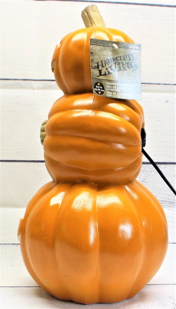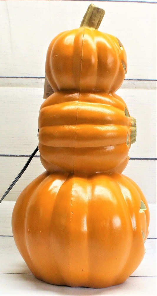 Holiday Living 18.5" Blow Mold Halloween Lighted Jack O Lantern Pumpkin Trio New With Tags Stands 18.5" tall Our Fun and Friendly Policies Customer Happiness is Our Priority: We're all about making you smile! If your purchase doesn't put a grin on your face, let us know. Your satisfaction is our mission, and we're here to make it happen. Fast Shipping, Happy Waiting: We're like a lightning bolt in the shipping world! Most orders zoom out within 1-2 business days of payment. Get ready to track your parcel's speedy journey to you. Return Cheers: Need to send something back? No worries! We're here to help with the return magic. Just remember, like a friendly handshake, you're responsible for the return shipping. Spreading Positivity: Your support means the world to us! Join our community of good vibes. Share your thoughts, leave feedback, and be part of our journey to keep the positivity flowing. Talk to Us, We're All Ears: Got questions, ideas, or just want to chat? We're all ears and ready to connect. Reach out through eBay's messaging, and expect a friendly response from our side! Your happiness is our driving force. Thanks for choosing us and letting us be part of your good times!