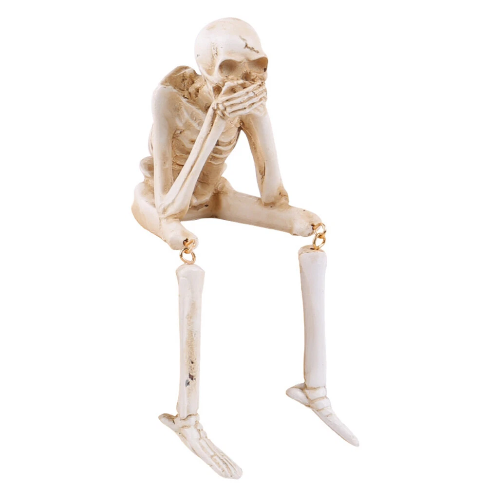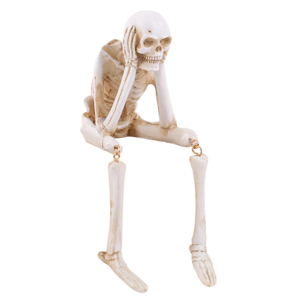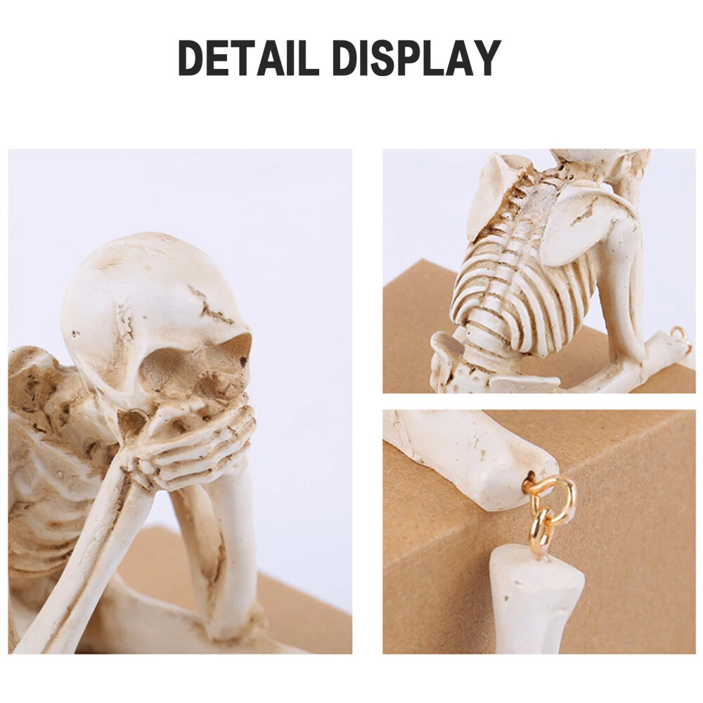 Features: Realistic Design: These resin human skeleton figurines feature intricate details and lifelike appearances, adding a touch of macabre elegance to any halloween display or haunted house decor. Versatile Placement: Suitable for home halloween tabletops, haunted houses, cemeteries, and even flat dormitory decorations, these creative skeleton figurines offer flexibility in creating spooky and festive atmospheres. Movable Parts: The halloween movable skull skeleton allows for customizable poses and arrangements, enhancing the interactive and playful aspect of decorating haunted houses or hosting fun themed parties. Durable Construction: Made of premium-quality resin, these skeleton statues are built to withstand the elements and provide long-lasting use for multiple halloween seasons, ensuring a reliable addition to your creative haunted house layout supplies. Unique Party Decor: Elevate your halloween celebrations with these creative skeletons that bring a fun and eerie vibe to any gathering, making them ideal for party decorations that are sure to impress guests and set the mood for a memorable event. Specification: Material: Resin Size: 9*8*20cm Notes: Please allow slight tolerances in size due to manual measurement, and lighting in photography may result in a difference in color than in real. Package includes: 1*Skeleton Statue