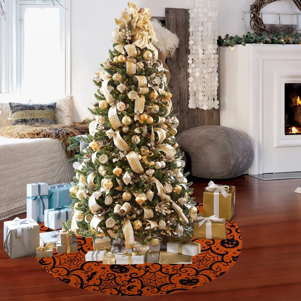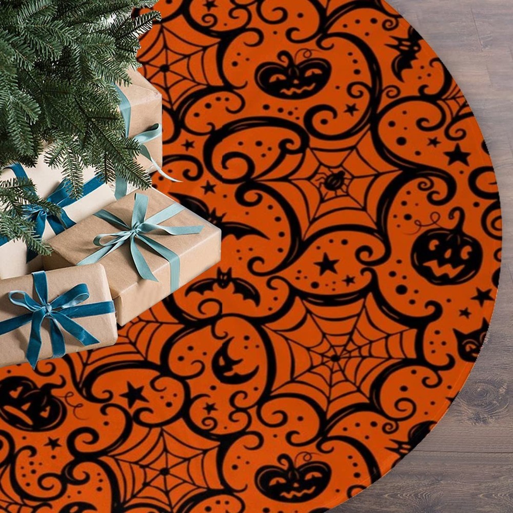 $ 22.0548-Inch Black & Orange Halloween Tree Skirt for Indoor & Outdoor Decor