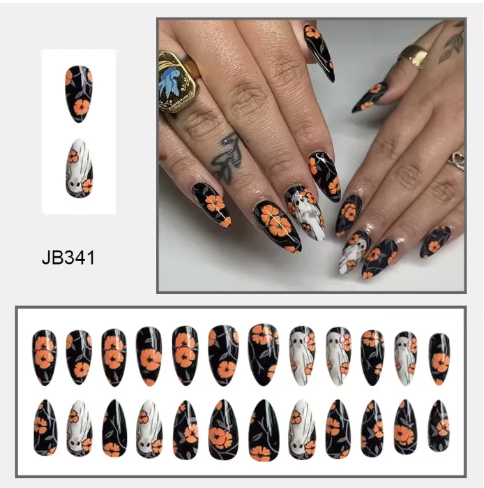 Elevate your spooky season style with our Halloween Press On Nails – the ultimate accessory for your haunted look! This 24-piece set of long stiletto black false nails features eerie ghost and spider designs, perfect for Halloween parties, cosplay events, or just showing off your festive spirit. Made from high-quality resin , these press-on nails are lightweight, durable, and easy to apply. Whether you're going for a witchy vibe, gothic glam, or creepy cute look, these statement nails instantly add drama and character to your Halloween costume or outfit. Each set includes various sizes to ensure the perfect fit for every finger. Just press on with nail glue or adhesive tabs, and you’re ready for a night full of chills and thrills! Key Features Complete Set : Includes 24 pcs of Halloween-themed black stiletto nails Spooky Designs : Features ghost and spider patterns for a chilling Halloween aesthetic High-Quality Resin : Durable, lightweight, and comfortable for extended wear Perfect for Halloween : Ideal for costume parties, trick-or-treating, or themed photo shoots Easy Application : Press-on style for quick and simple use (tabs included) Specifications Material : Acrylic Resin Style : Long Stiletto Color : Black with ghost and spider designs Number of Pieces : 24 nails Occasion : Halloween, Cosplay, Themed Events Origin : China Keywords press on nails, Halloween nails, stiletto black nails, spider nails, ghost fake nails, Halloween press on nails, long stiletto nails, Halloween nail art, black false nails, spooky nails, creepy cute nails, resin nails Halloween, cosplay fake nails, gothic nail tips