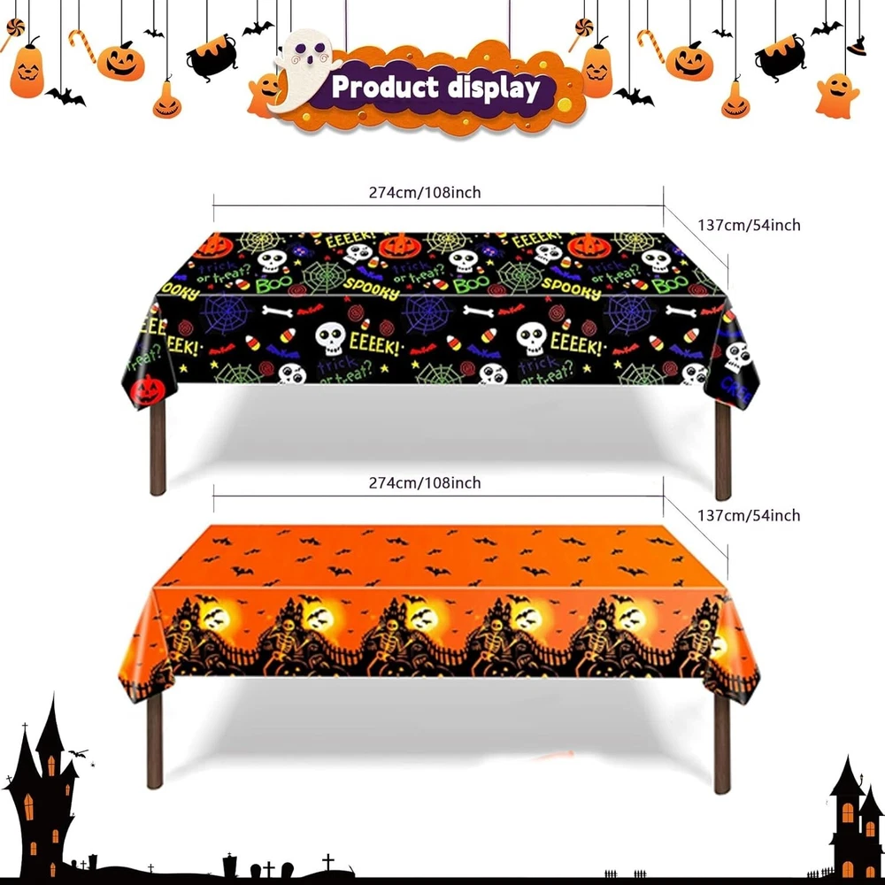 -Brand New - Never Used - Questions: Feel free to ask any Questions - BOX: Never Opened - DESCRIPTION: 【Joy and Mystery】 Turn your tables into a Halloween masterpiece with our 2pcs Halloween plastic tablecloth set! Ideal for Halloween parties and special events, it’s a fun and spooky way to instantly create a spooky atmosphere. 【Effortless Cleanup】Our two Halloween table cloths are ideal for Halloween decorations indoors and outdoors, adding a festive atmosphere to any Halloween environment. Made of high-quality PE plastic, these rectangle tablecloths are easy to wipe clean and effectively prevent spills. After the party, just roll up the tablecloth and discard, making cleanup a breeze and saving precious time. 【Festive Design】 This Halloween tablecloth set features creative elements like pumpkins, skulls, bones, bats, spiders, and spider webs to craft the perfect spooky atmosphere. The eerie design with vibrant colors enhances the festive mood of your table setting. Its eye-catching and realistic visual design transports us into the colorful world of Halloween, allowing us to enjoy the grand celebration and providing endless fun. 【Halloween Party Decorations】 It sets the perfect spooky ambiance for your table while keeping it clean. Pair your Halloween pumpkin plastic tablecloth with other Halloween decorations to enhance the eerie atmosphere. Adorn your Halloween table with this plastic tablecloth and make your party unforgettable. 【Suitable for Various Occasions】 These Halloween disposable tablecloths are perfect for a variety of events, including holiday parties, family gatherings, and friends' get-togethers, adding a festive Halloween atmosphere. They can also serve as everyday tablecloths, saving you cleaning time. Enjoy your moments of happiness! - OFFERS: Reasonable offers are considered, LOWBALLERS, Best price and Lowest askers will be ignored - all sales final/no refunds/ no exchanges/ no returns - Disclaimer: I do not own the brand's trademarks, logos, pictures, or products posted. I do not intend to infringe on copyright. I find such content available on the internet. Contents are considered fair use. - 2PCS Halloween Tablecloth Decorations Indoor, Pumpkin Rectangle Halloween Tablecloth Plastic, Halloween Table Cloth Disposable, Halloween Table Cover Party Decorations, 54×108 Inch